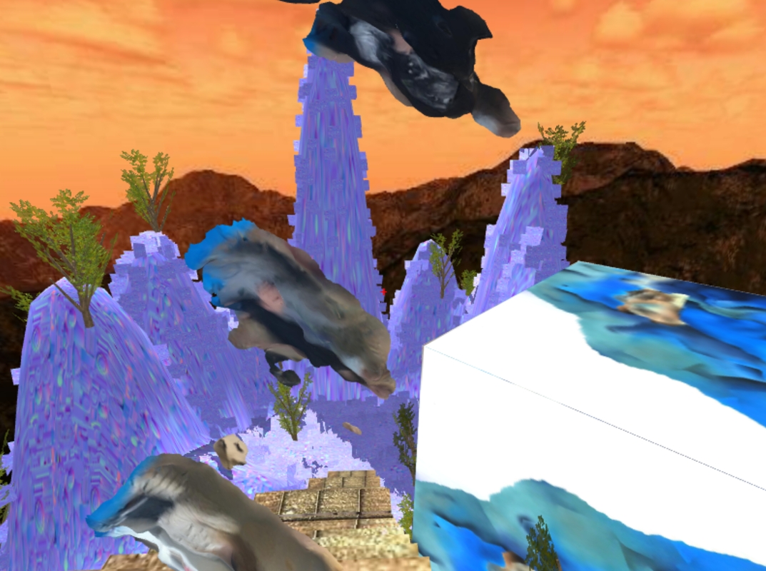 M.V., Š.B.: Patekęs į bet kokio kompiuterinio žaidimo erdvę, žaidėjas tampa aktyviu tos erdvės dalyviu ir, priklausomai nuo žaidimo suteikiamų galimybių, gali daryti įtaką jį supančiai aplinkai, erdviškai ją tyrinėti (jei tai 3D žaidimas). Virtualioji parodos pristatymo erdvė mums leido manipuliuoti savo pačių kūriniais: juos didinti, mažinti, priversti suktis, leisti žiūrovui juos deginti ar pereiti kiaurai. Sukurdami paralelę tarp parodos ir kompiuterinio žaidimo, tam tikruose lygiuose leidome žiūrovui pačiam keisti erdvės ar paveikslų tekstūras (paviršius) ir būsenas. Interaktyvumas žiūrovui suteikė galimybių paveikslus suvokti ne kaip objektus, o kaip pačią aplinką arba joje vykstančią, nuo jos neatskiriamą gyvą sistemą.