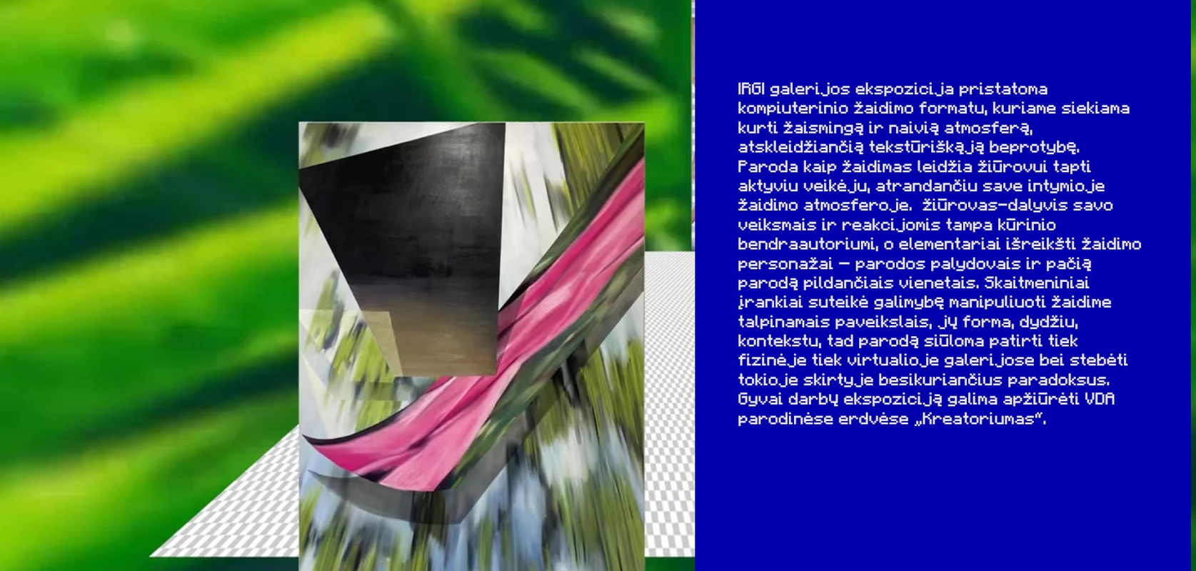Netradicinę parodą pamatyti – tiksliau, patirti neįprastu kompiuterinio žaidimo formatu – žiūrovai kviečiami virtualiojoje „IRGI galerijoje“.