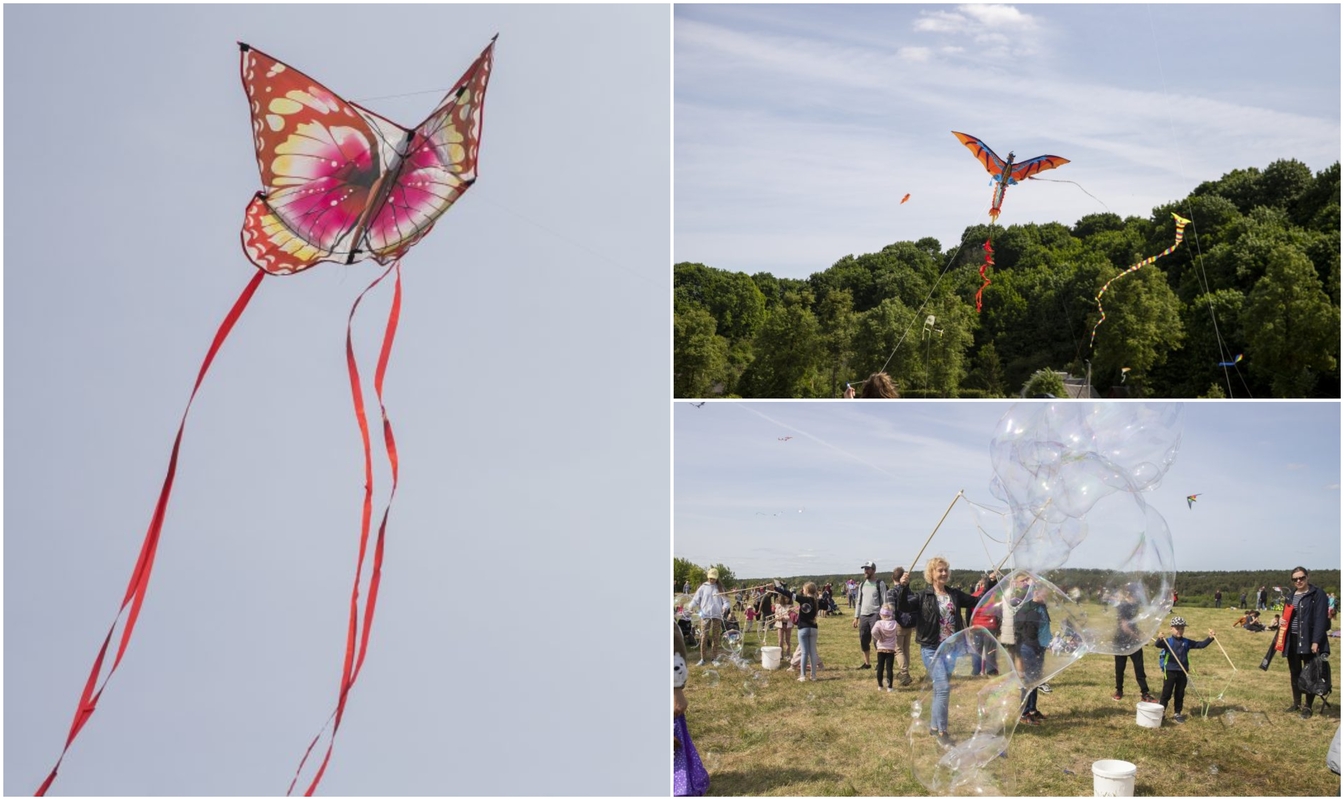 Pažvelgi aukštyn – ir nesinori akių nuleisti. Štai didžiulis lyg vėliava aitvaras su Baltų simbolika, šalia gali įžvelgti plazdantį baltą pasakų paukštį, čia pat – savadarbis mažylis su Lietuvos trispalve, dangų praskrodžia ryškiaspalviai, uodeguoti pirktiniai.