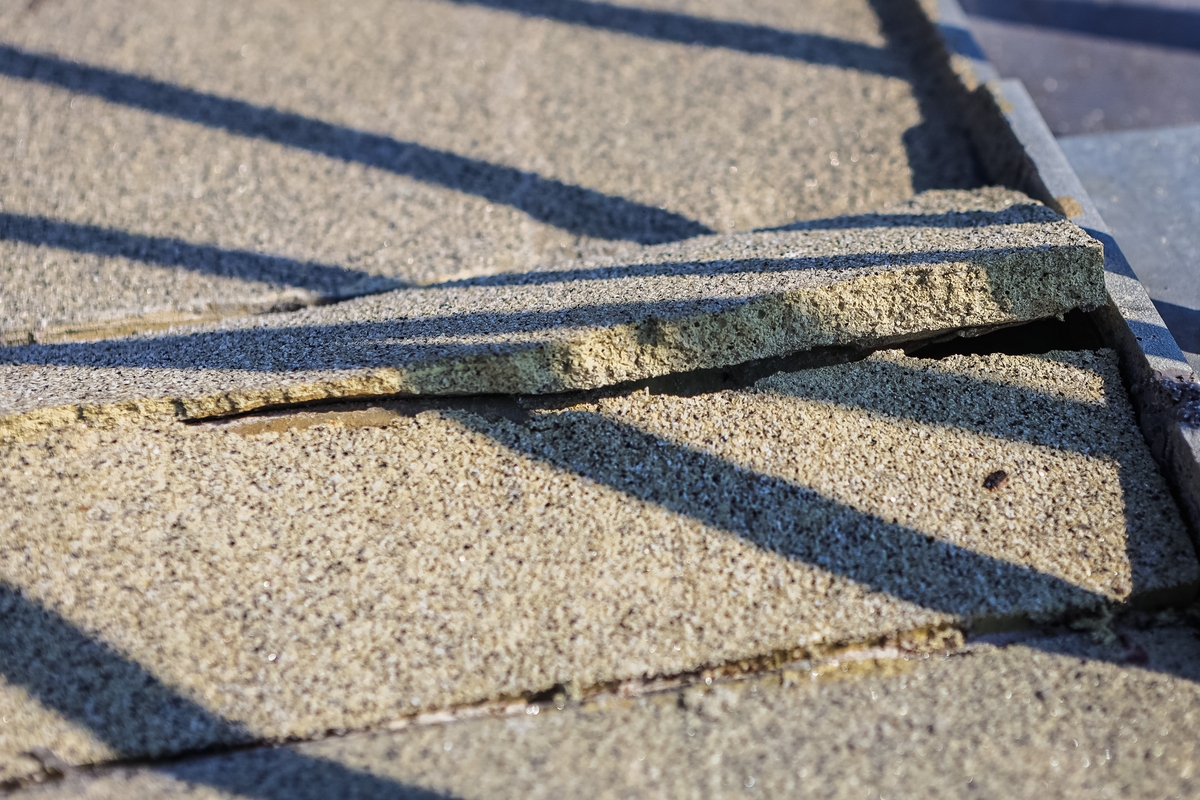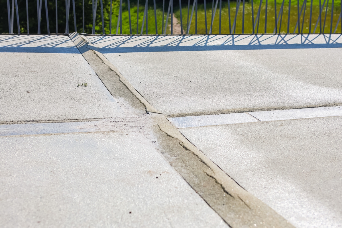 Defektai: sutrūkinėjo skersai tilto einanti deformacinė siūlė. / Justinos Lasauskaitės nuotr.