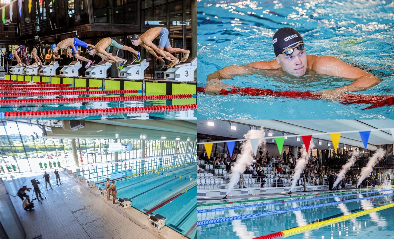 Pirmieji olimpinį baseiną išbandė Lietuvos plaukimo rinktinės nariai. Jų laukė niekur nefiksuota plaukimo be taisyklių rungtis – kuo greičiau įveikti 100 metrų atstumą.