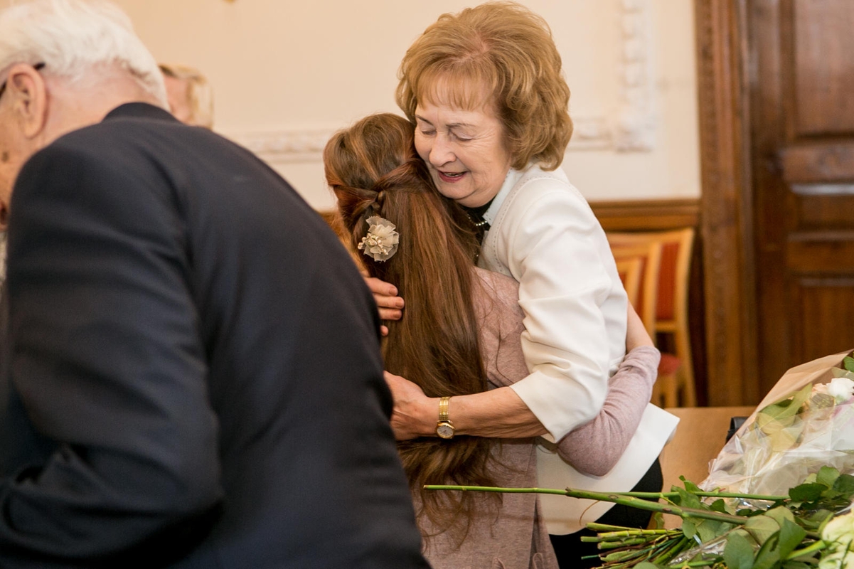 Šeštadienį į Kauno rotušę deimantinius sutuoktinius atlydėjo trys jų vaikai ir šeši anūkai, kiti artimieji. Kaip ir prieš 60 metų, ceremonijoje dalyvavo Kristinos ir Stanislovo vestuvių liudininkė, anuomet pasirašiusi ant poros santuokos dokumentų.
