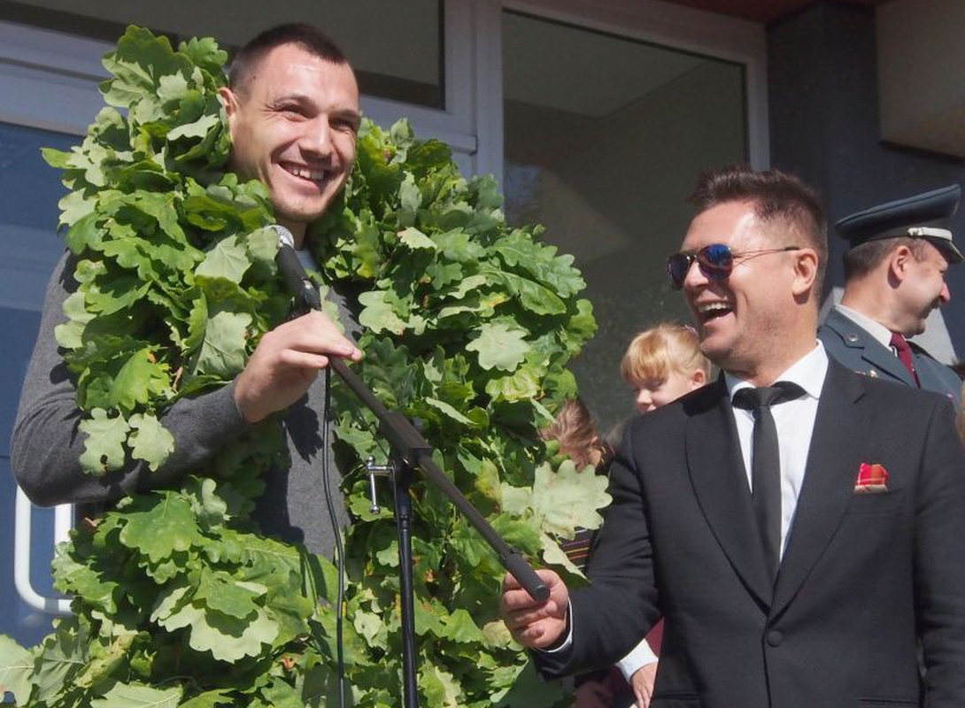 Sutiktuvėse pirmos gimnazistų dainos, gėlės buvo skirtos sportininko tėveliams Jonui ir Marytei Mačiuliams. Sportininką, kuris atvyko kartu su dukryte Klaudija Marija, ąžuolo vainiku papuošė Karmėlavos seniūnas Šarūnas Šukevičius. Krepšininką taip pat sveikinoKauno rajono savivaldybės mero pirmasis pavaduotojas Petras Mikelionis ir mero patarėja Violeta Boreikienė, kiti vietos bendruomenės nariai.