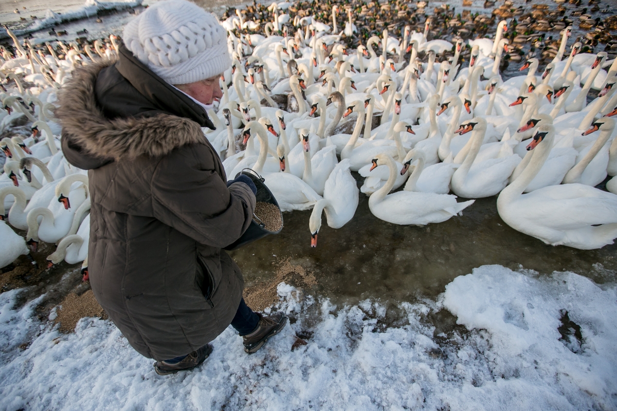 Lietuvos ornitologų draugijos (LOD) savanorė Loreta Kiliotaitienė jau daugiau nei dešimtmetį lesina per speigus gulbes. Ji sako esanti pasirengusi ir šiai šalčio atakai – grūdų gulbėms parūpino Adomas Balsys ("Lytagra") ir Seimo narys, ūkininkas Kazys Starkevičius, atvežęs 1,5 tonos maltų pupų. "Jie visada pirmieji ištiesia pagalbos ranką gulbėms – ačiū šiems vyrams. Dėkoju ir bendrovei "Galinta", atvežusiai avižų, "Kauno švaros" generaliniam direktoriui Daliui Tumynui, pasirūpinusiam, kad būtų atvežta žvyro, labai reikalingo pažerti ant slidaus ir stataus Nemuno šlaito – juo lipu su kibirais grūdų žemyn, prie upės", – apie savo žiemišką kasdienybę pasakojo nenuilstanti gulbių lesintoja iš Žemųjų Šančių Loreta.