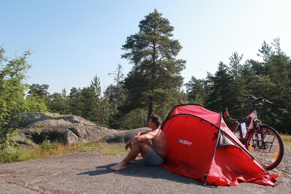 Palapinę Aurimas statė pačiose netikėčiausiose vietose.
