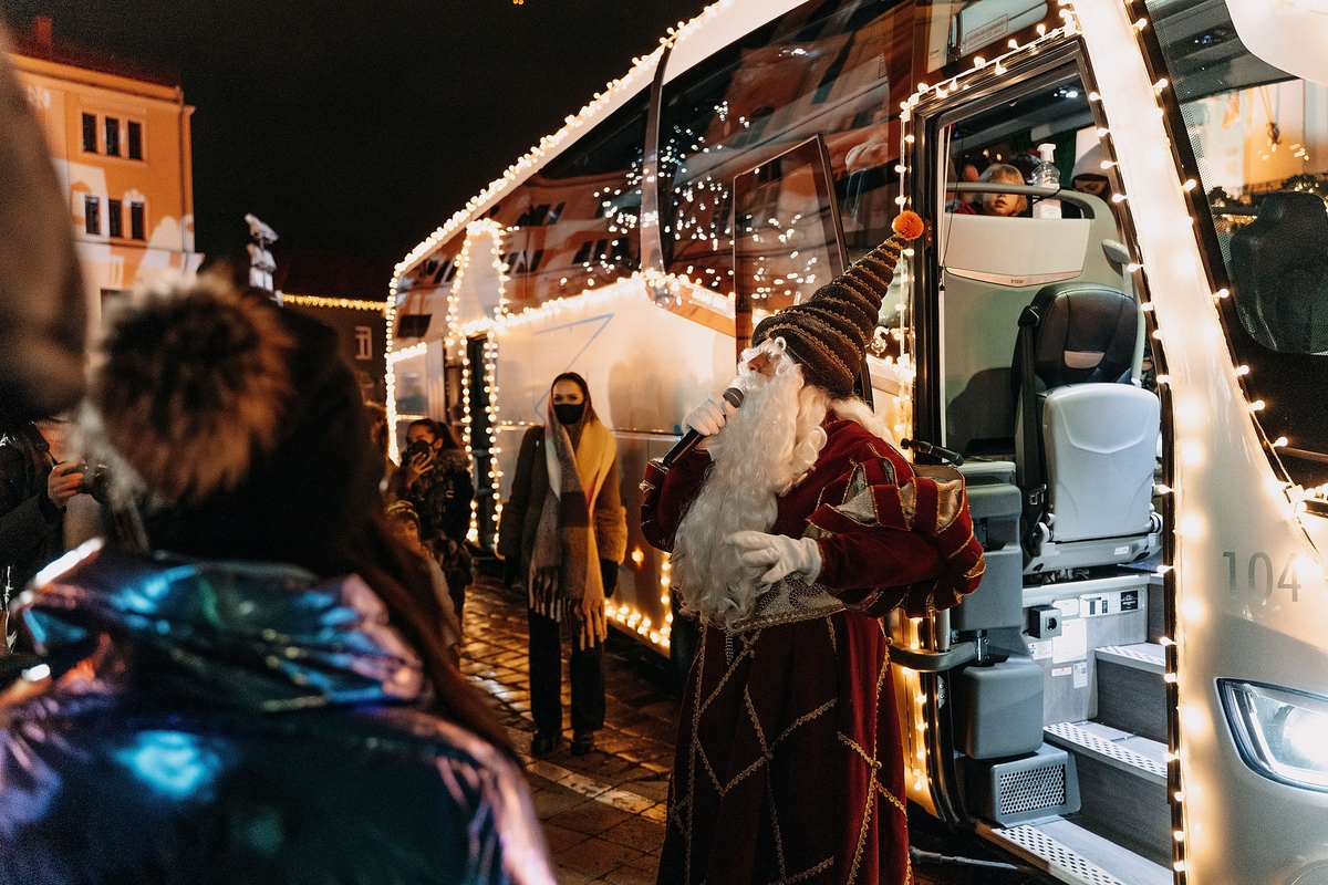 Organizatoriai kviečia gyventojus aktyviai laukti autobuso, pasipuošiant kiemus ar savo namų langus kalėdinėmis lemputėmis ir kitomis šventinėmis dekoracijomis.
