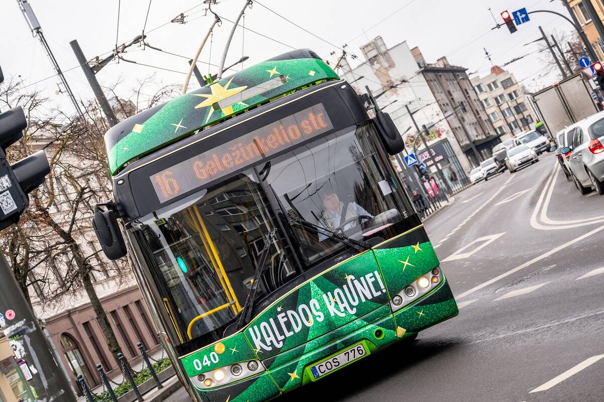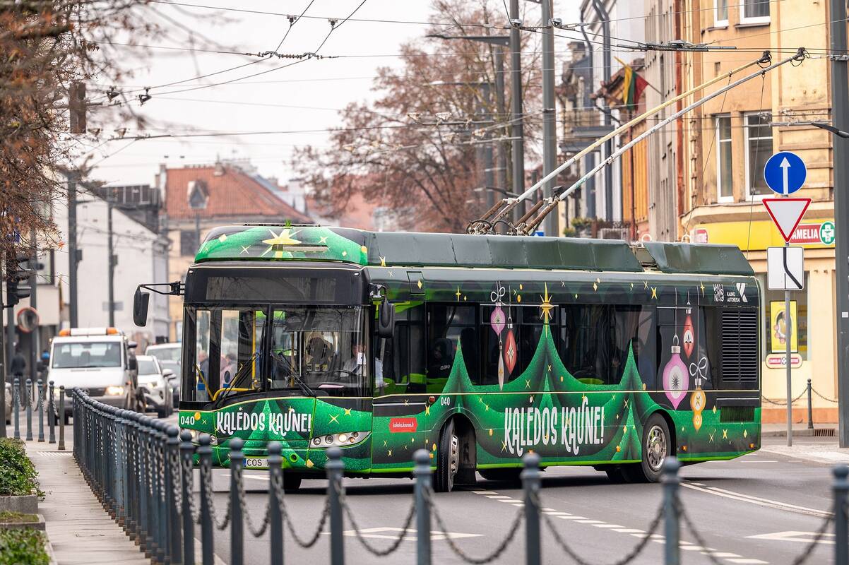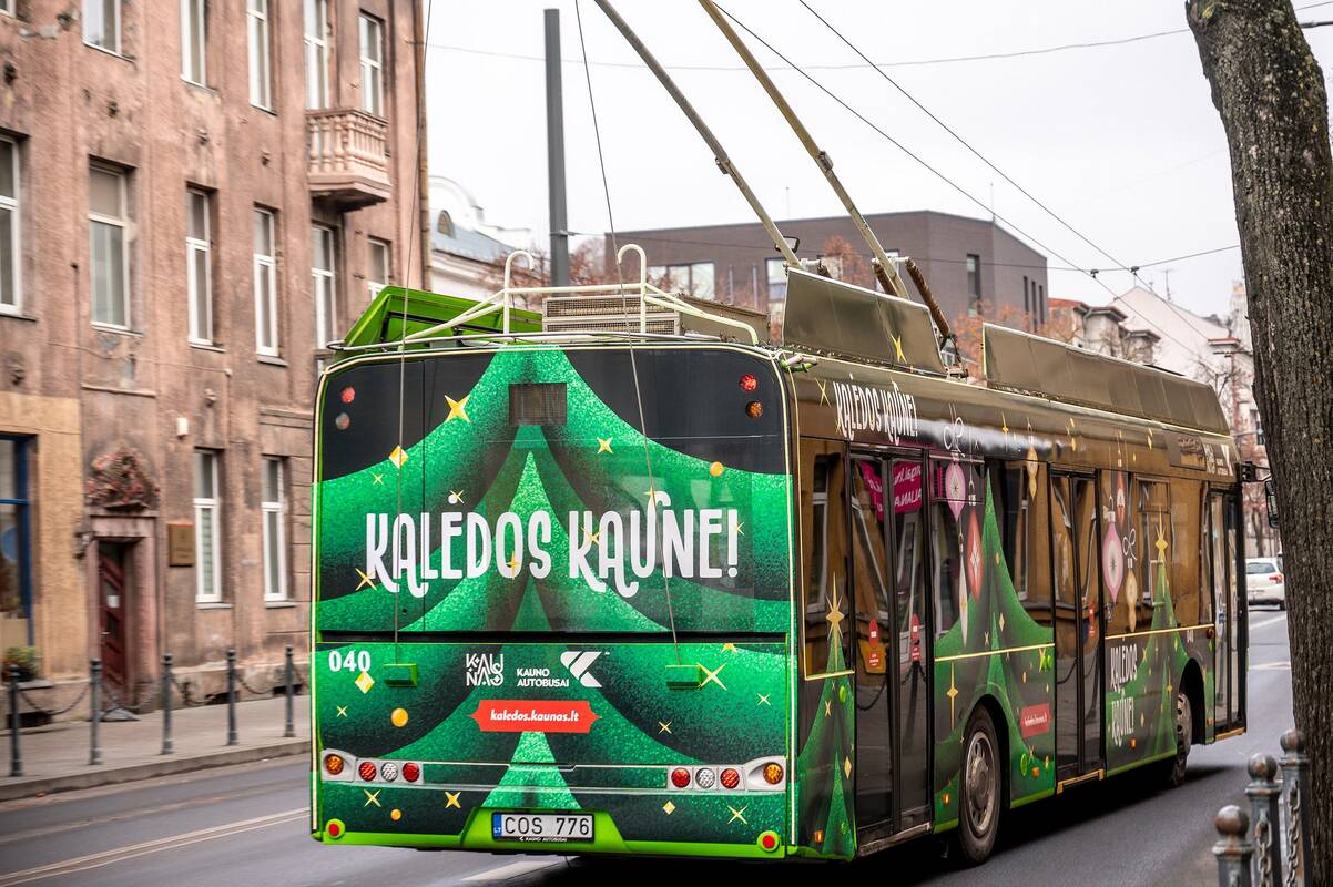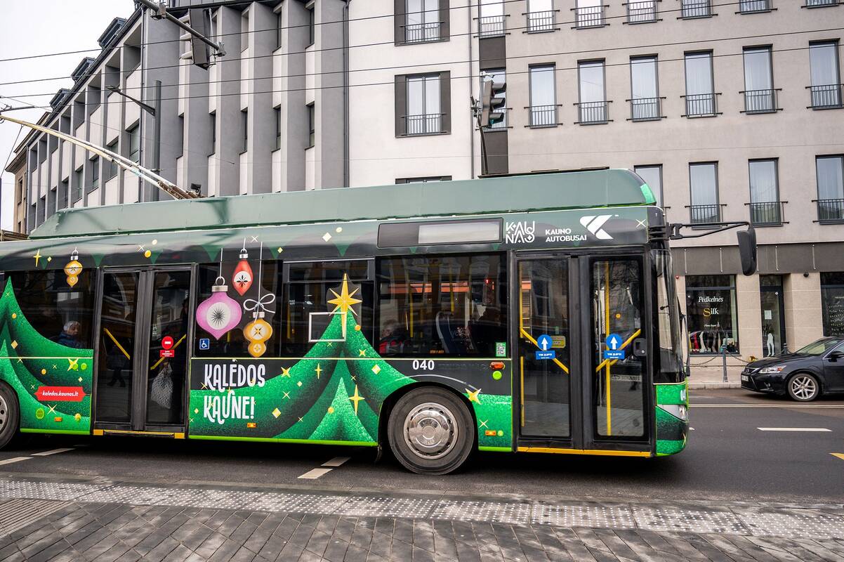 Miesto viešasis transportas pažymėtas kalėdiniais akcentais, tad šventinė nuotaika skleisis plačiai po Kauną, mat papuošti troleibusai važinės skirtingais maršrutais, todėl juo važinėti galės iš skirtingų rajonų į darbus ar namus keliaujantys miestiečiai ir Kauno svečiai.