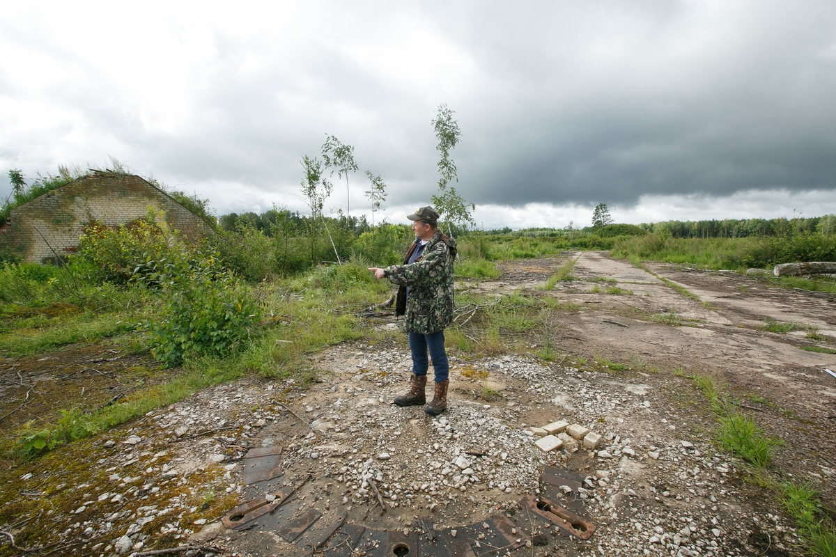 Pasiekiame raketinės bazės, kurioje sovietmečiu buvo dislokuota visa kariuomenės divizija, teritoriją. Kertame anksčiau spygliuotos tvoros ir patikros punkto ženklintą šios bazės pirmąją apsaugos zoną. Dabar čia – tik apirę pastatai. "Tai – buvęs patikros punktas, tai – generolų viešbutis. Į bazę dažnai atvažiuodavo generolai ir kiti tikrintojai iš Maskvos: tikrino branduolinį ginklą, kaip jis saugomas, transportą parką, operatyvinius darbuotojus ir t.t. Čia sėdėjo pranešimų šifruotojai, kiti operatyviniai darbuotojai", – pasakoja V.Veprauskas.