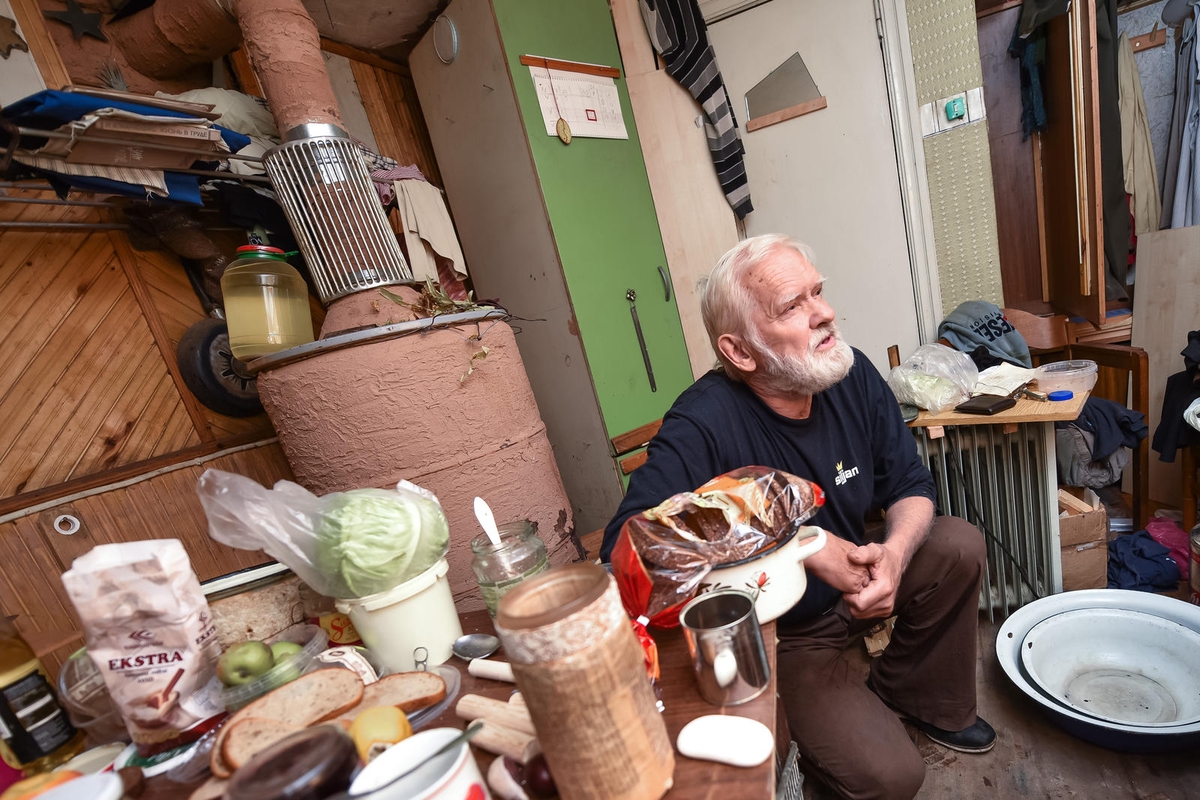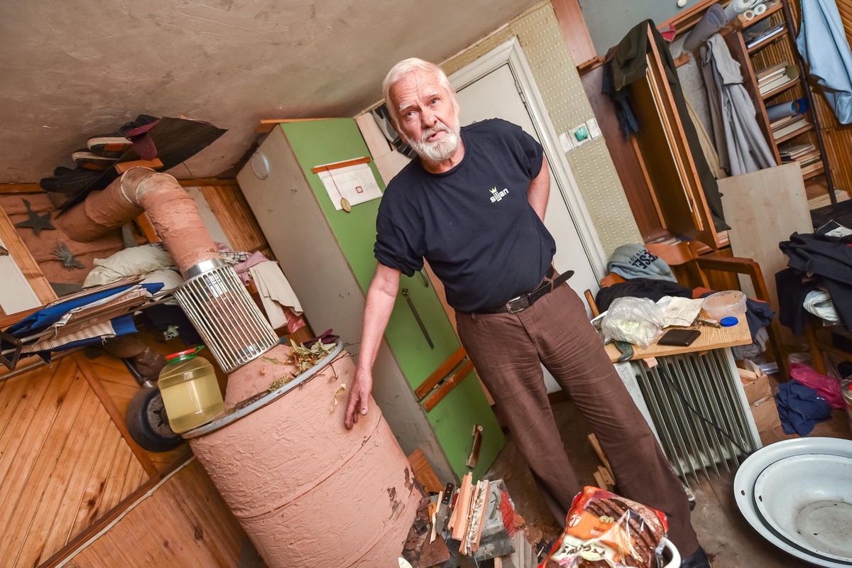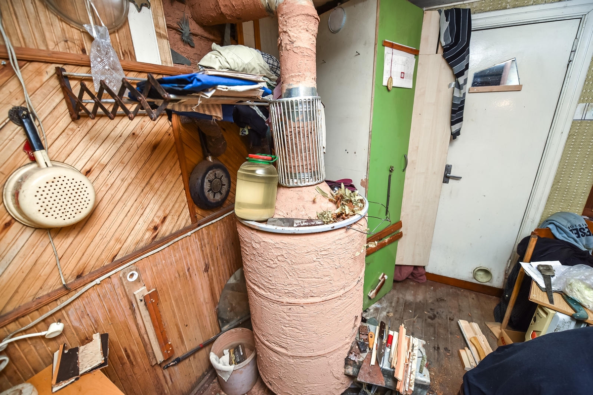 Jis pasakojo šiame rūsyje gyvenąs jau 25 metus. Ankstesnė jo krosnis sukiužo, tad meistrai ją visai išgriovė. Tuomet jis pasistatė savos gamybos šildytuvą.