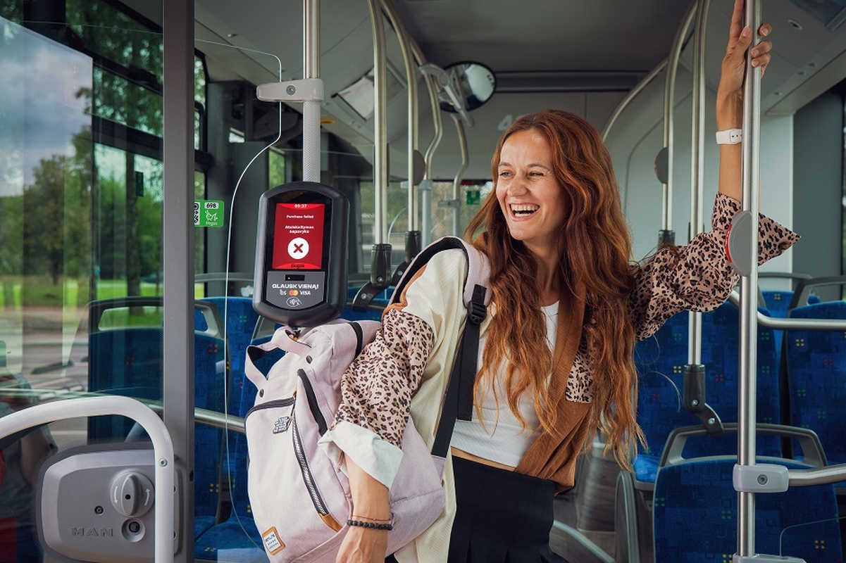 Įlipus į viešojo transporto priemonę – autobusą ar troleibusą, prie komposterio pakaks priglausti „MasterCard“ ar „Visa“ bekontaktę kortelę ar bet kurį su ja susietą išmanųjį įrenginį: telefoną, laikrodį, žiedą ir kt.