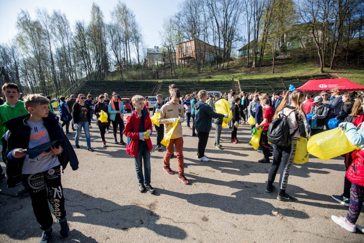Dainų slėnyje akcijos pradžioje susibūrė daugybė žmonių. Organizatoriai jiems dalijo pirštines, specialius maišus.