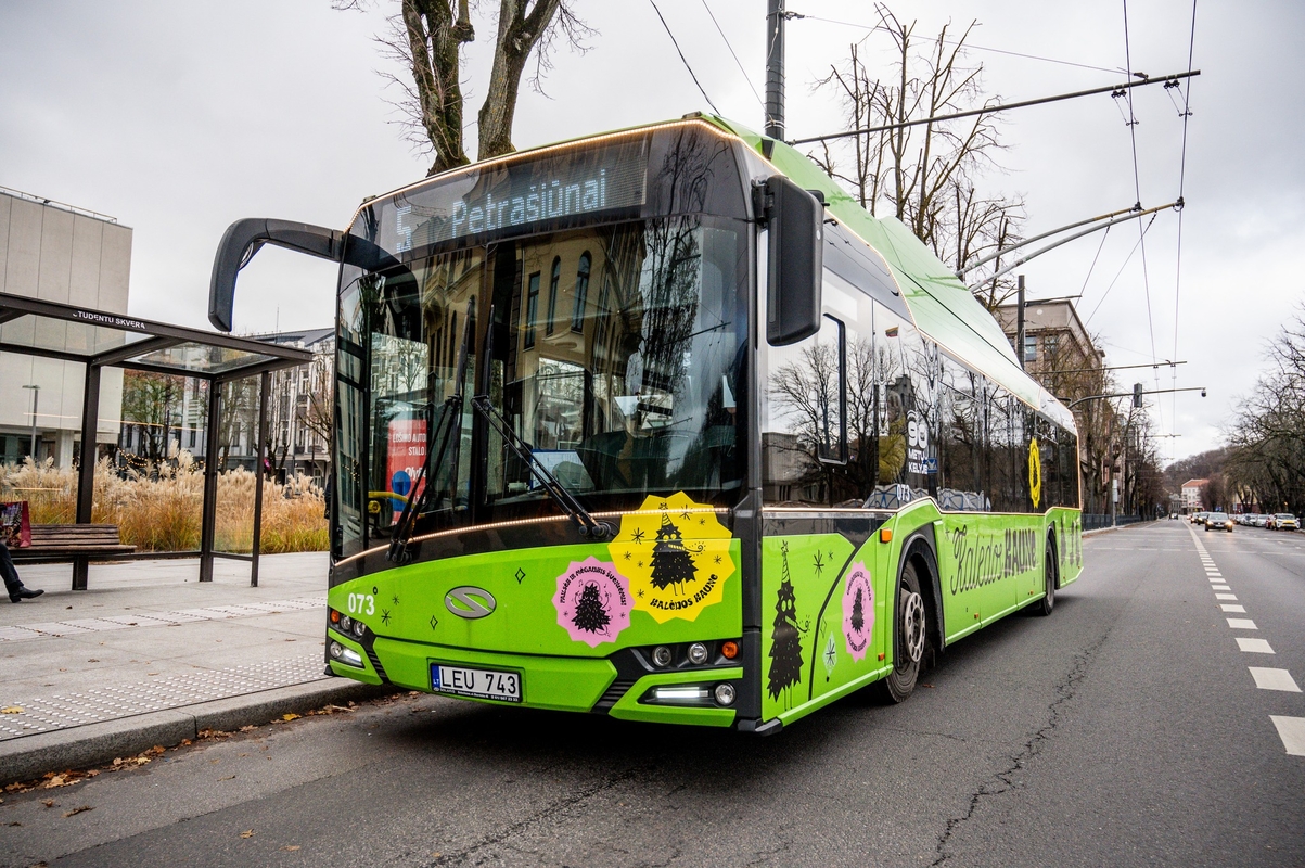 Kaunas veža šventinę nuotaiką: ant miesto troleibuso – kalėdiniai akcentai