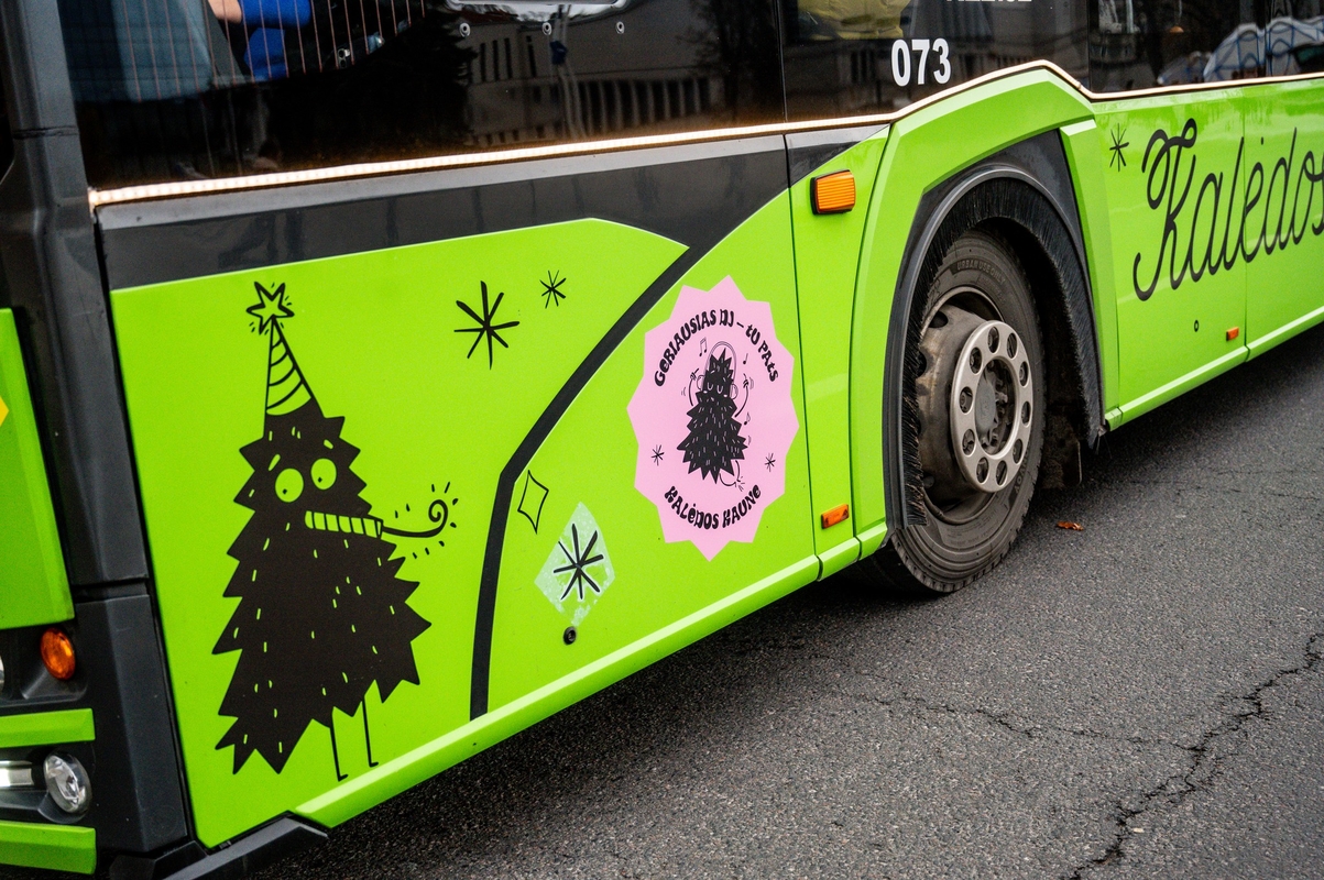 Kaunas ne tik Vienybės aikštėje puošia natūralią eglutę ir jau šeštadienį pakvies į jos įžiebimą, tačiau ir kitose miesto vietose dėlioja kalėdinius akcentus. Štai šventinėmis dekoracijomis pasipuošė ir miesto viešasis transportas.