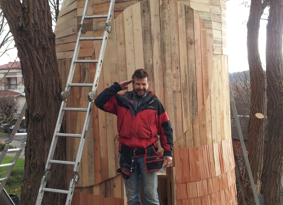 "Jo paskirtis – vaikų žaidimų namelis, bet jį galima vertinti ir kaip skulptūrą", – pasakojo namelį skulptoriui Algirdui Vaištarui padėjęs statyti stalius Audrius Peseckas.