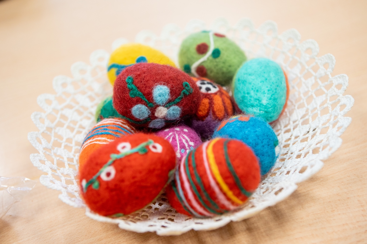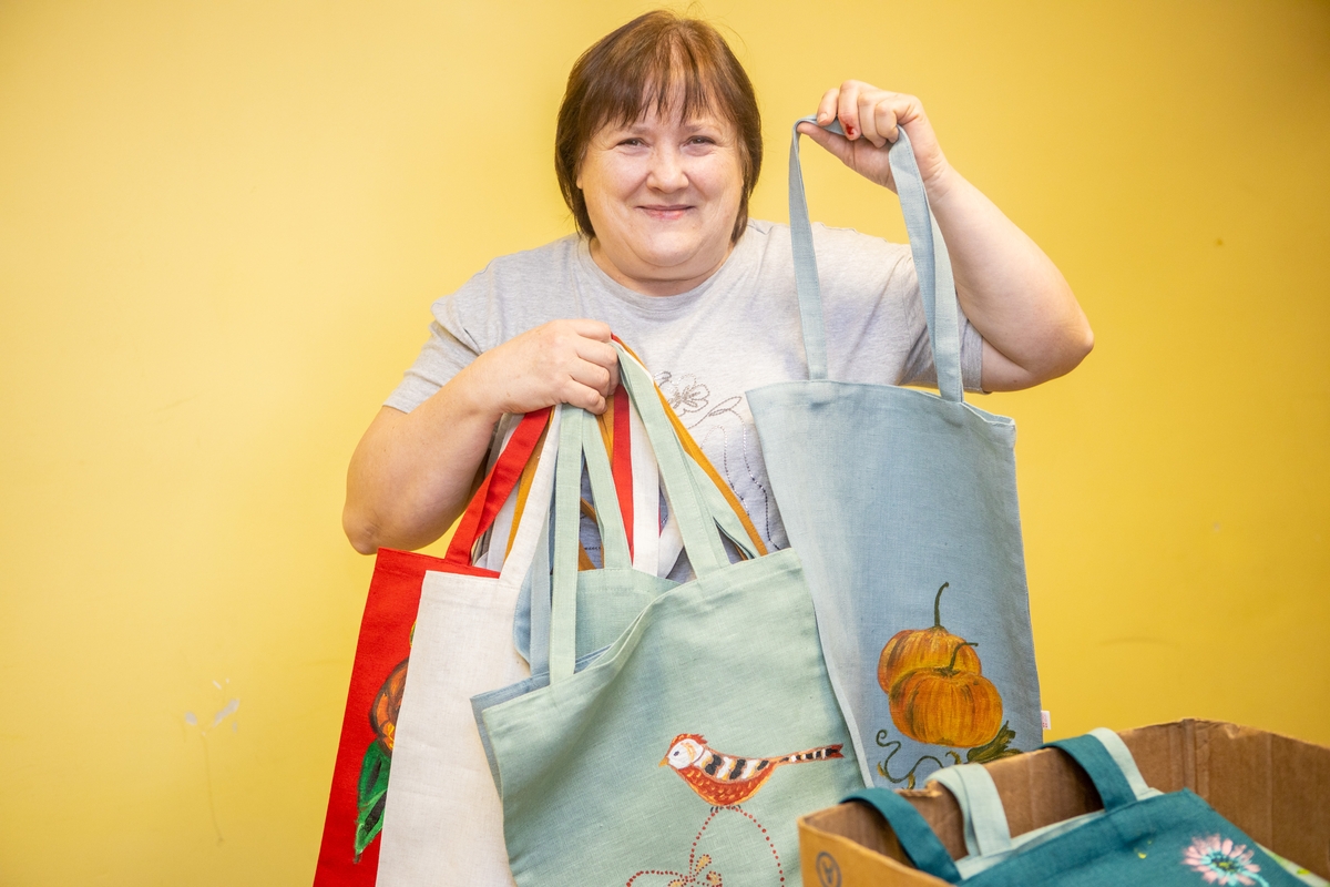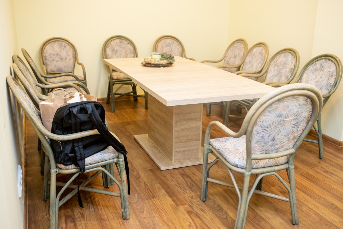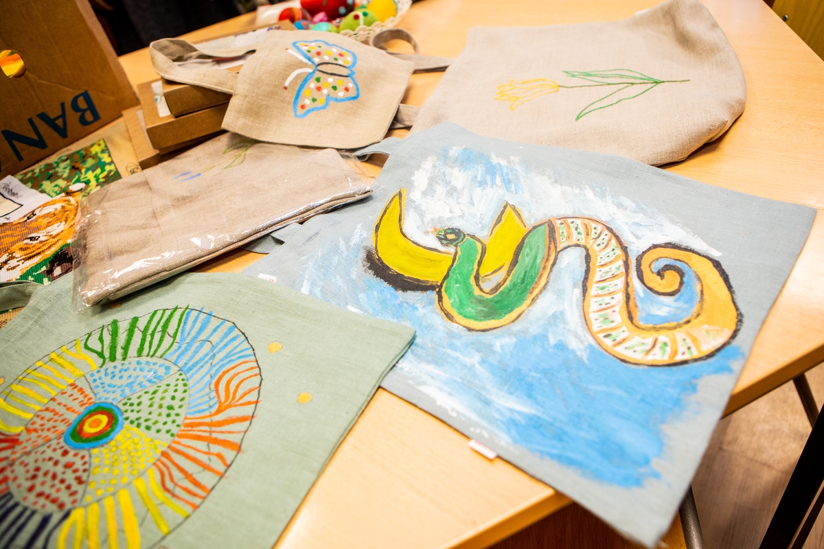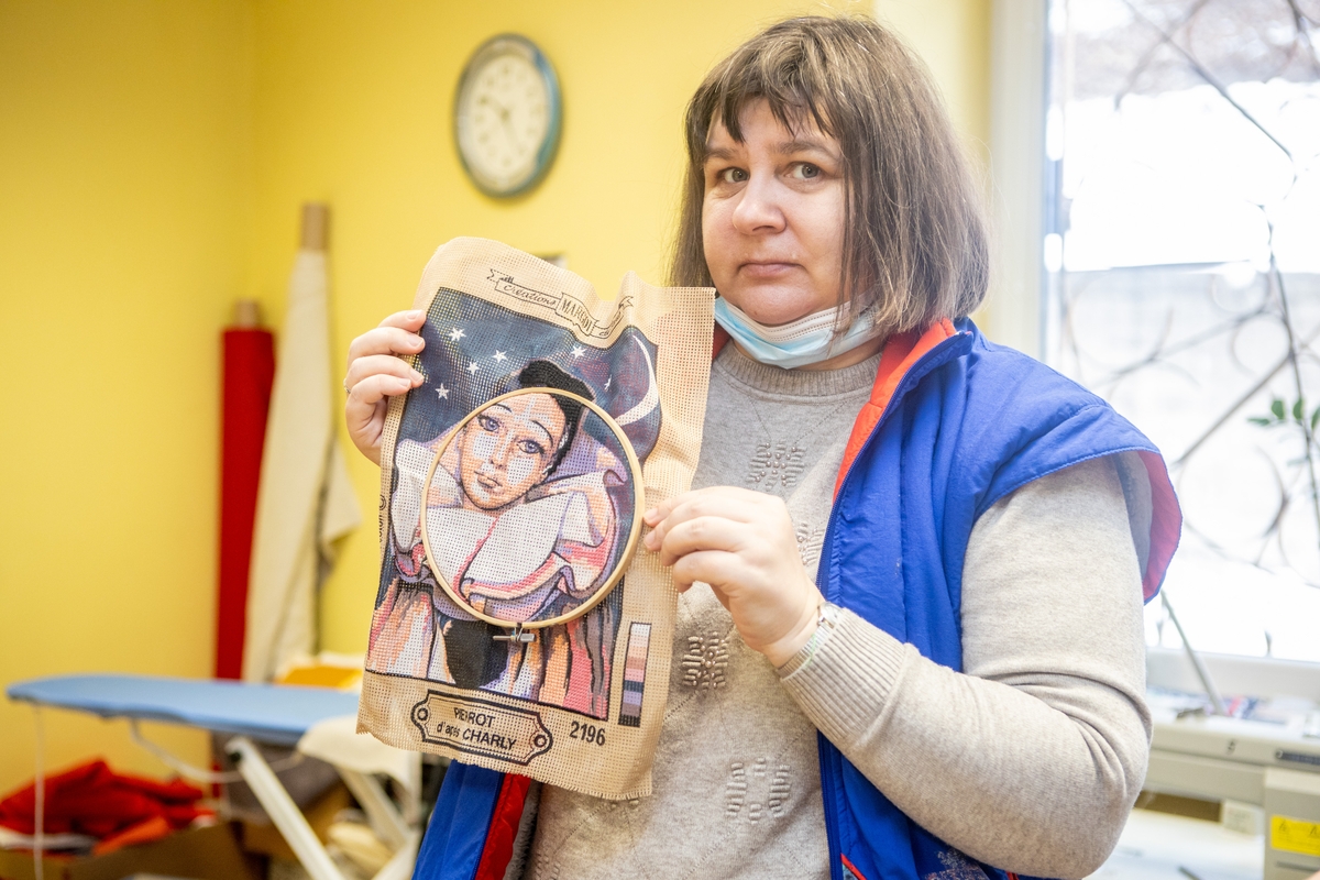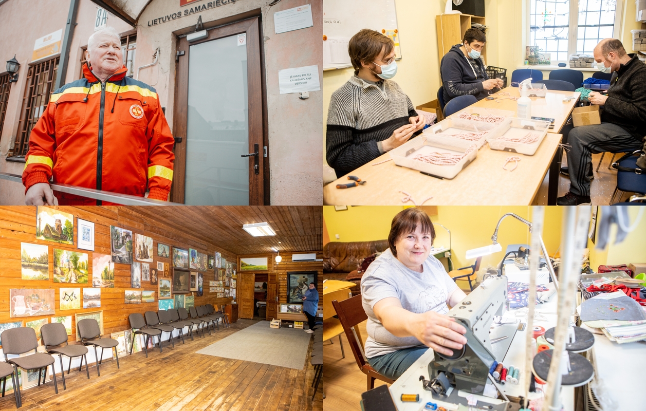 Tai – kūrybinės dirbtuvės. Išvydusi tarpduryje stovinčius svečius, samarietė Dalia vienu rankos mostu atlaisvino stalą ir su pasididžiavimu ant jo ėmė dėti rankdarbius, kuriuos kūrė drauge su kitais samariečiais ir čia užsukančiais miestiečiais. Pirmiausia – iš spintos ji ištraukė kryželiu siuvinėtus paveikslus, iš medžiagos skiaučių kurtus pagalvių užvalkalus, vilnonius velykinius margučius, linines prijuostes ir maišelius su rankų darbo piešiniais.