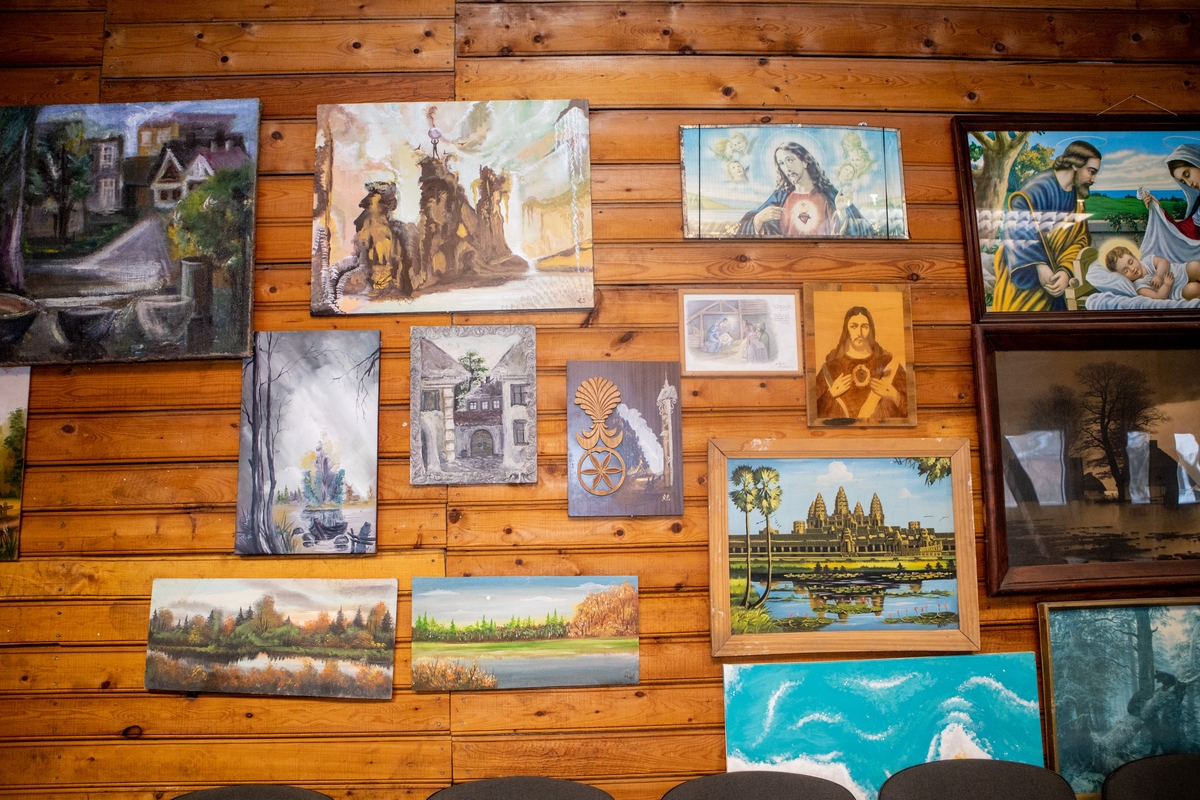 Pirmo aukšto kabinetų sienos ir susirinkimų salė antrame aukšte nukabinti paveikslų, kuriuos tapė savanoriai. Anuomet mėgę taurelę arba turėję kokių kitų priklausomybių, dabar jie su teptukais ir aliejiniais dažais stoja prie drobių. Tapo peizažus, natiurmortus, religines scenas.
