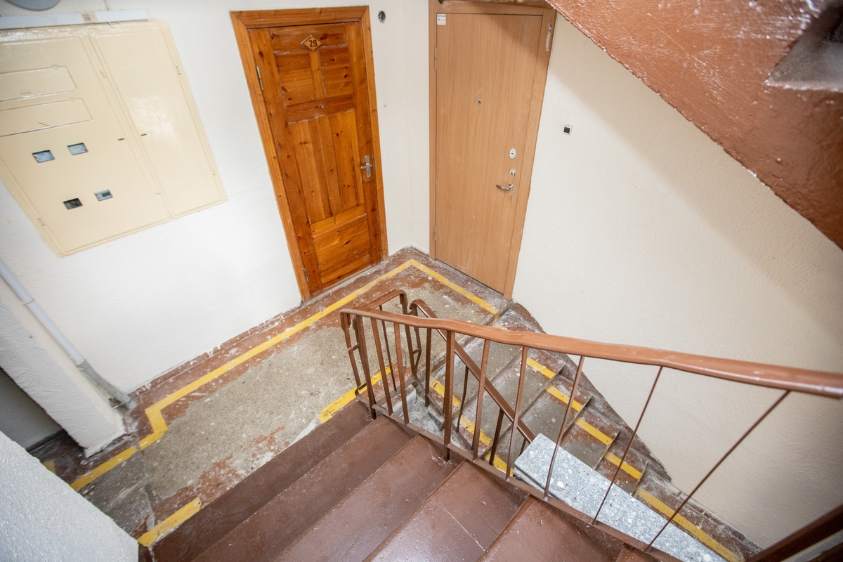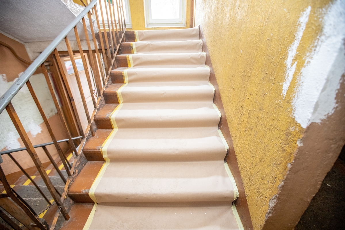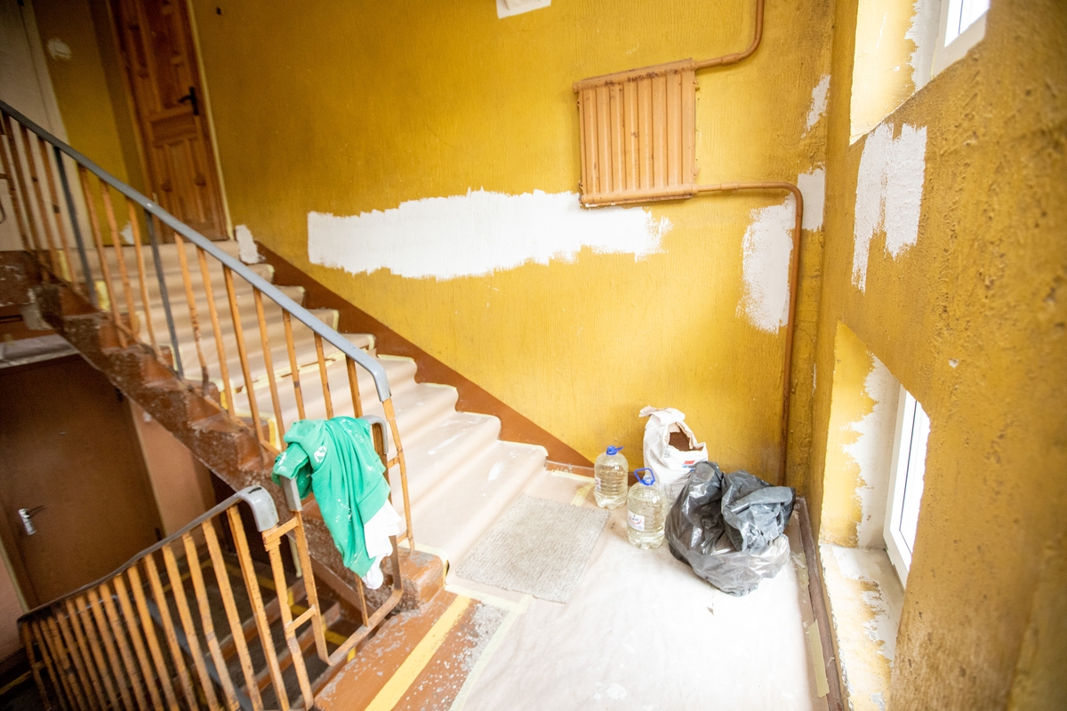 "Dabar remontuojama pirma laiptinė, kai ji bus sutvarkyta, tada abiejose laiptinėse pirmame aukšte nuo lauko durų iki lifto bus išklotos plytelės. Ir viskas, visi darbai bus padaryti. Darbai užtruko, nes dažytojų kolektyve kažkas susirgo koronavirusu, tad visiems reikėjo izoliuotis, o mes pasamdėme kitus", – kiek detaliau apie darbus paaiškino pašnekovas ir pridūrė, kad dažymo darbai bus užbaigti per kelias savaites, tada bus klojamos plytelės pirmuose aukštuose.