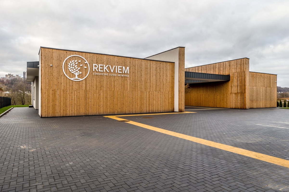 „Rekviem“ atsisveikinimo namai veikia 30 arų sklype ant Neries kranto, prie pat Eigulių kapinių (Jonavos g. 41A, Kaunas). Iš viso čia įrengtos keturios atsisveikinimo salės, talpinančios nuo 30 iki 100 žmonių. Visas erdves architektai suplanavo taip, kad lankytojai galėtų susikaupti ir visą dėmesį sutelkti į vykstančią atsisveikinimo ceremoniją, jiems netrukdytų aplinkiniai. Į atsisveikinimo sales pro didelius langus su vaizdu į Nerį sklinda natūrali šviesa, tačiau artimųjų privatumas dėl to nenukenčia – iš išorės salės vidus nėra matomas, nes langai atspindi šviesą. Iš kiekvienos salės šiltuoju sezonu bus galima išeiti tiesiai į parką ir specialiai lankytojams sukurtas ramybės erdves.