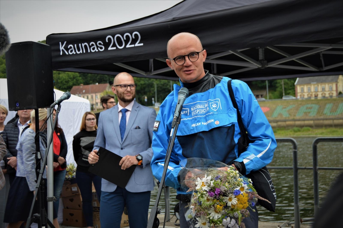 „Nacionalinę ekspediciją“ kauniečiai pasitiko itin džiugiai ir su ovacijomis. Prieplaukoje keliautojus sveikino orkestras, o ekspedicijos dalyviams rankas spaudė ir Kauno meras Visvaldas Matijošaitis. „Ačiū už tokį įspūdingą sutikimą“, – susirinkusiems dėkojo vienas pažintinio projekto sumanytojų, žurnalistas Edmundas Jakilaitis. Keliautojai į krantą išlipo su šypsenomis, eidami lingavo į taktą ir noriai mojavo susirinkusiems.