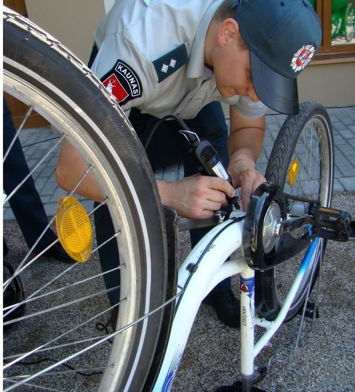 Dviračių žymėjimas policijoje – veiksminga ir nieko nekainuojanti dviračių apsaugos nuo vagių priemonė. Jei nespėjote to padaryti šiandien vykusioje akcijoje, visada galite užsukti į artimiausią policijos įstaigą ir pareigūnai mielai padės Jums pasirūpinti šios transporto priemonės saugumu.