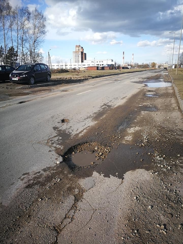 Autorės įkeltose nuotraukose matoma, kad šioje gatvėje po žiemos pasirodė gilios duobės, o padidėjus automobilių srautui čia eismas gali tapti tikra kančia.