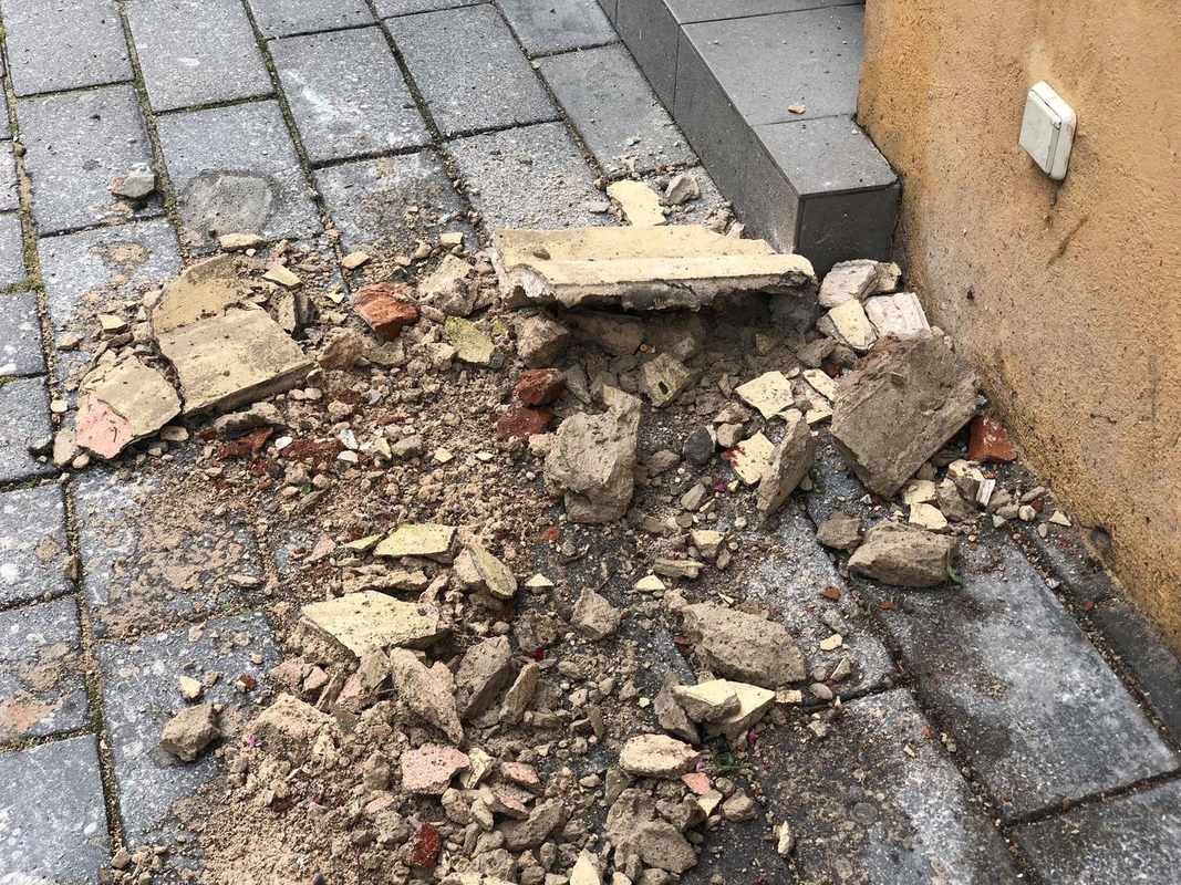 Jauna moteris pasidalijo nuotraukomis, kuriose matyti nuo Vilniaus gatvėje 32 esančio pastato atskilusios nuolaužos. „Šiandien ryte vaikščiojant senamiesčiu man ant galvos vos nenukrito nuo namo stogo atskilę tinko gabalai. Tad nepamirškite ne tik gerėtis senamiesčio vaizdais, bet ir išlikite budrūs – pakelkite akis ir į viršų“, – patarė moteris.