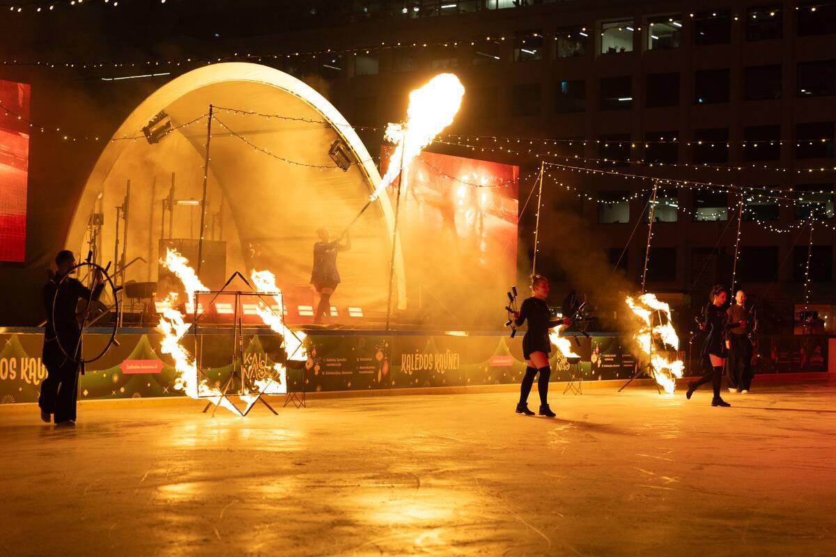 Vienybės aikštė, pernai kauniečius ir miesto svečius traukusi dėl Kalėdų eglės, šiemet klegės nuo čiuožėjų. Penktadienio vakarą čia atidaryta čiuožykla po atviru dangumi.