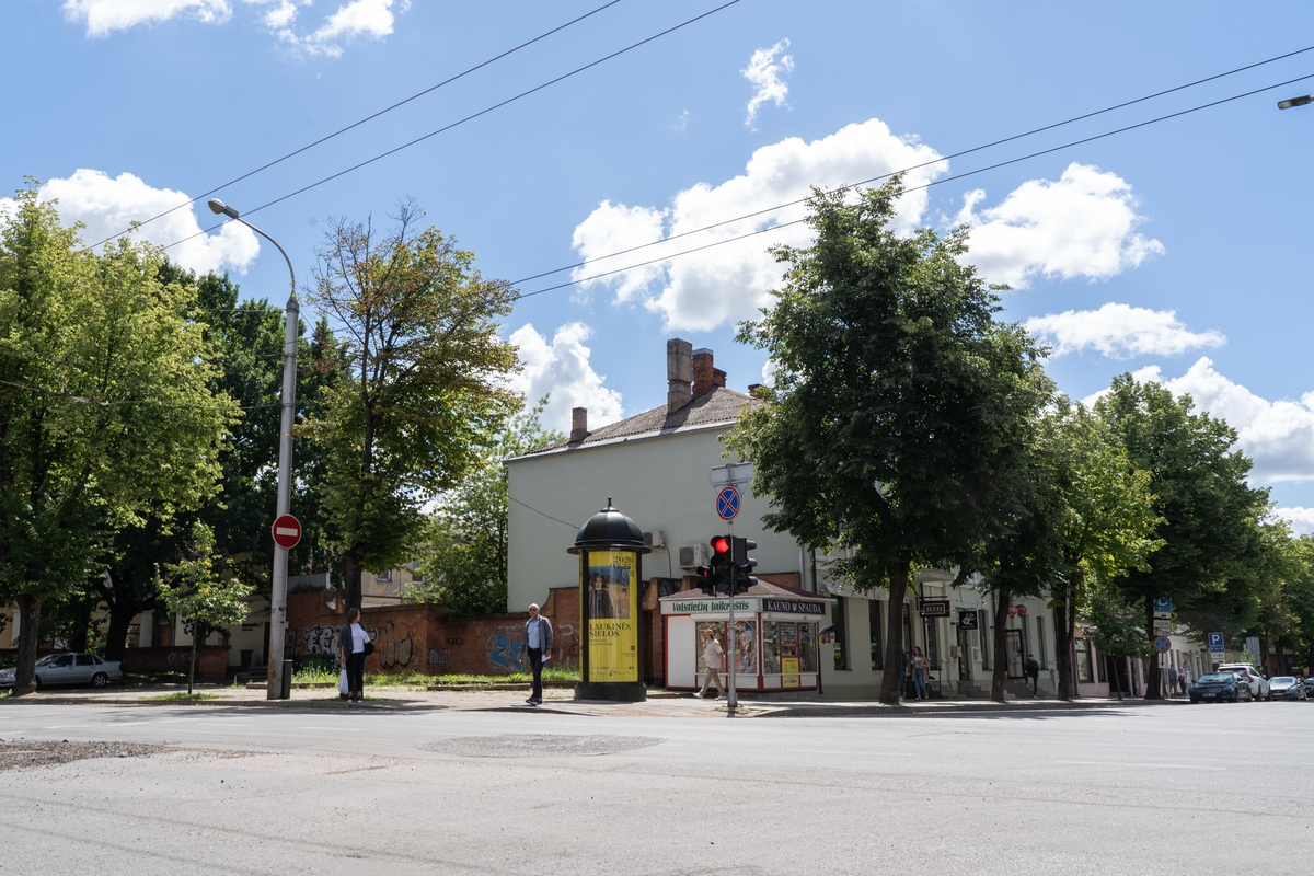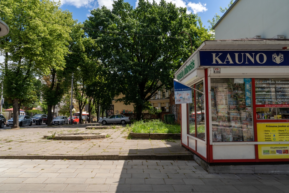 Einant nuo Kauno Šv.Arkangelo Mykolo (Įgulos) bažnyčios ir vos kirtus Kęstučio gatvę kairėje Gedimino gatvės pusėje pasitinka nykokas vaizdelis.