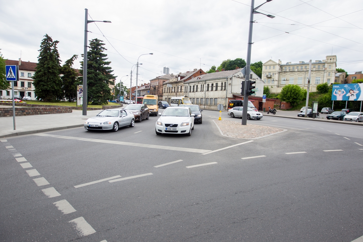 O kaip dėl miesto centrą dusinančių spūsčių? Juo labiau kad siūloma didinti pėsčiųjų perėjų skaičių. Studijos autoriai tiki, kad transformuota sankryža taptų pralaidesnė ir aiškesnė. Anot jų, šviesoforų fazių liktų tiek pat, kiek buvo, susiaurinus važiuojamąją dalį, liks daugiau vietos pėstiesiems, dviračiams ir viešai erdvei.