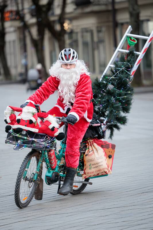 Kauno gatvėse – originalus sveikinimas: ant dviračio ne tik Kalėdų Senelis, bet ir eglutė