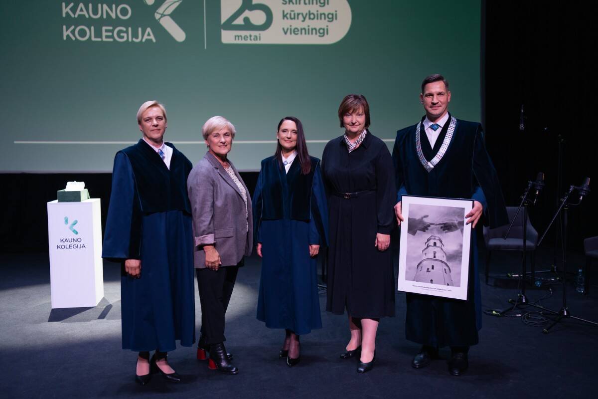 Šventinio posėdžio metu Kauno kolegijos bendruomenę prezidento vardu sveikino patarėjas dr. S. Olencevičius, linkėjęs įkvėpimo dar drąsesniems tikslams, tarptautinio bendradarbiavimo stiprinimo, mokslinio kapitalo kaupimo ir tvirtos lyderystės: „Tai ketvirtis amžiaus nuoseklaus darbo, atsakomybės ir tarnystės švietimui bei visuomenei. Kauno kolegija išsiskiria savo gebėjimu jungti akademinę kokybę su praktiniais gebėjimais, atsigręžti į regionus, parengti žmones, kurie ne tik įgyja žinių, bet ir tampa brandžiais, atsakingais valstybės kūrėjais. Tai svarbus indėlis į Lietuvos pažangą ir ateitį.“