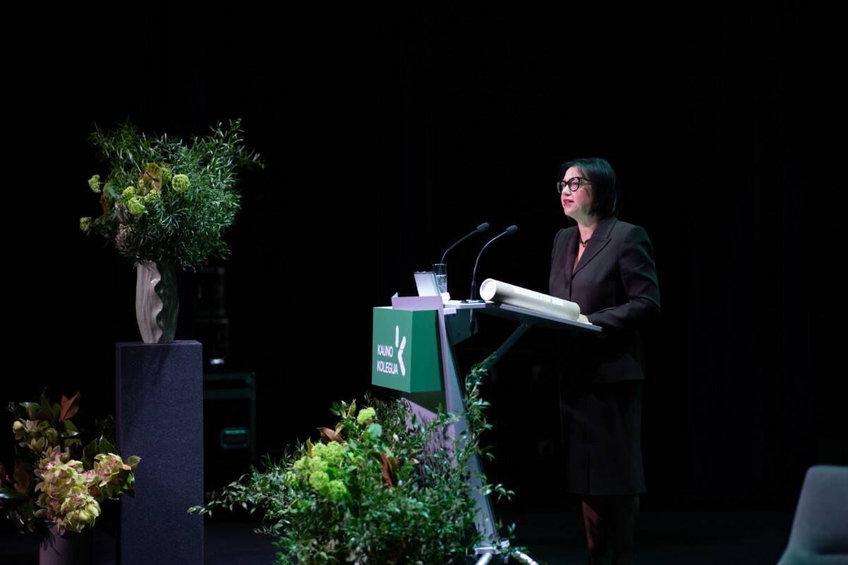 Švietimo, mokslo ir sporto ministrė R. Popovienė savo sveikinime pabrėžė žmonių svarbą ir indėlį kuriant organizaciją: „Kauno kolegijos istoriją kuria žmonės. Ir iš tiesų, kuriate puoselėdami aukštojo mokslo tradicijas, akcentuojate labai svarbią kryptį – regioniškumą ir mokslo pritraukimą arčiau jauno žmogaus. Tad šiandien noriu palinkėti, kad šis jubiliejus taptų nauju įkvėpimu ir toliau siekti inovacijų, išlaikyti lyderystę bei sėkmingai kurti kokybišką ir konkurencingą aukštąjį mokslą.“