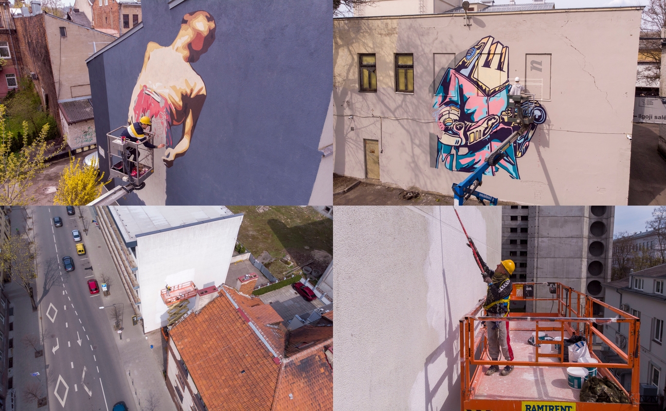 Pasak I. Tumaitės, šiai užduočiai – nutapyti dešimtmečius kultūrą kuriančias organizacijas po atviru dangumi – menininkai buvo renkami ilgai ir kruopščiai. Misija atiteko trims žinomiems Kauno gatvės meno atstovams – Tadui Vincaičiui-Plūgui, Karoliui Grubiui ir Linui Kaziulioniui. Skirtingose Kauno vietose ant pastatų sienų atsiveriančios erdvės tapo šių gatvės menininkų kūrybos drobe. Ant pastato Nemuno gatvėje šokio judesyje sustingo įamžinta „Auros“ šokėja Clara Gambino, nutapyta Lino Kaziulionio, Mickevičiaus gatvėje rusvomis spalvomis „suskambėjo“ Kauno simfoninio orkestro muzika (autorius T. Vincaitis-Plūgas), o žurnalo „Nemunas“ interpretacija ryškiais Karolio Grubio potėpiais užgimė Kauno Nacionalinio Dramos teatro kiemelyje.