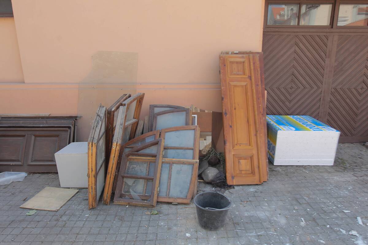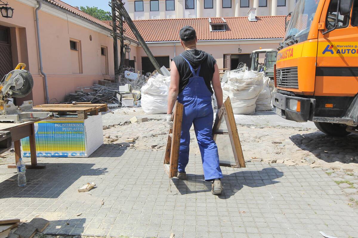 "Baisu, kas čia darosi. Viduje neliks nieko. Viskas iš pagrindų bus pakeista. Padarys euroremontą ar kažką panašaus", – žvalgydamasis po kiemelį svarstė vairuotoju prisistatęs vyras, laukęs, kol jo sunkvežimis bus prikrautas statybinio laužo.