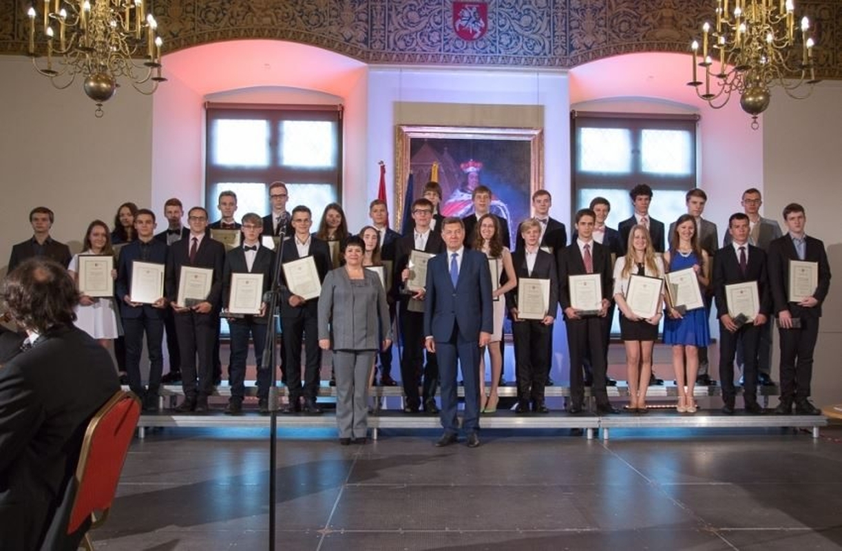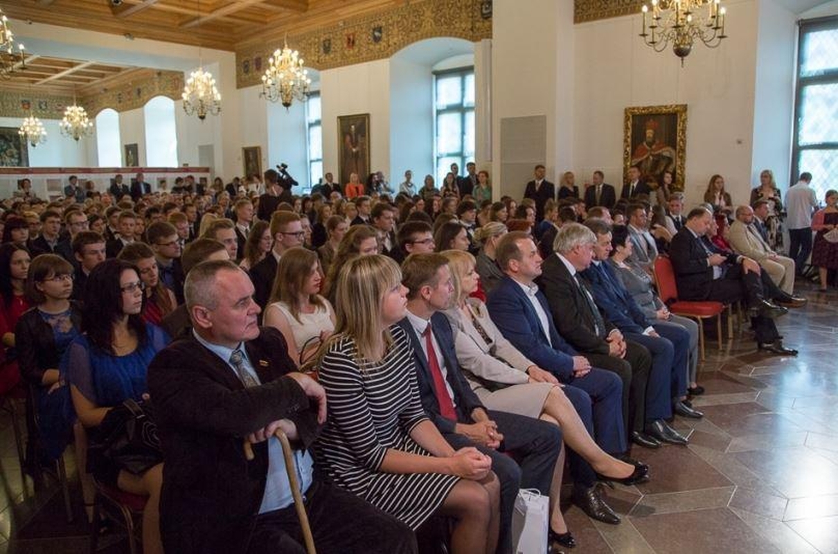 Valdovų rūmuose pasveikinti sėkmingiausiai brandos ir profesinio mokymo kvalifikacijos egzaminus išlaikę Lietuvos abiturientai. Tarp septynių pačių geriausių – net trys kauniečiai. Jų net penki egzaminai įvertinti šimtukais.