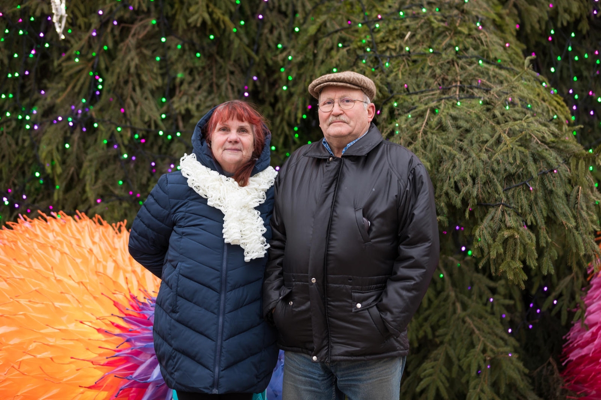 Rotušės aikštėje, prie pagrindinės Kauno eglės, sutikti sutuoktiniai iš Neveronių Rima ir Juozas Ručiai taip pat teigė, kad išeinantys metai buvo neblogi. Ir visai nekiauliški. "Priešingai – mes buvome apdovanoti už gražiausią sodybą Kauno rajone!" – reikšmingiausią šių metų įvykį savo asmeniniame gyvenime įvardijo R.Ručienė. Tačiau svarbiausias šių metų Lietuvos įvykis, abiejų sutuoktinių nuomone, gaisras Alytuje, kur gyvena jų dukra ir anūkas. Ši nelaimė jiems užgožė ir prezidento rinkimus. J.Ručys nebuvo linkęs apeiti ir šiemet kilusio ginčo, ar prie Kauno turi būti prijungta dalis Kauno rajono. Tam nepritariančio pašnekovo argumentas buvo toks: "Atėjome prie eglutės Pilies gatve – baisu, kaip ji atrodo! Todėl gal pirmiau reikėtų susitvarkyti savo kieme, o jau po to dairytis į kitus – jau sutvarkytus!"