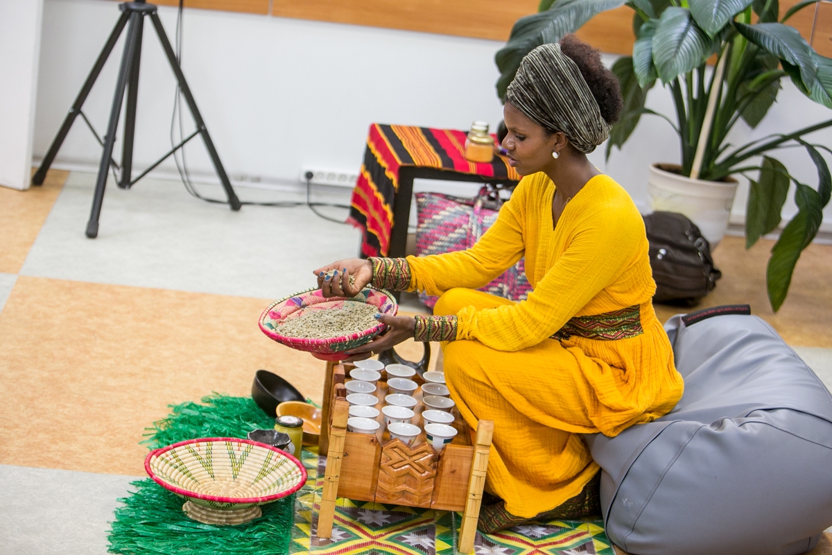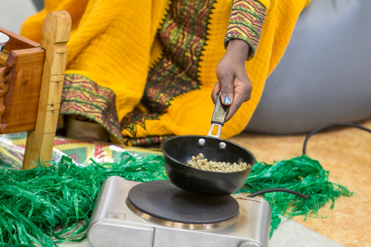 "Įbėrė kelis šaukštelius maltos kavos ir užpylė verdančiu vandeniu. Viskas!" – Etiopijoje, anot pašnekovės, kavos ceremonija reiškia, kad žmonės neperka galutinio produkto – sumaltos kavos. Tie, kurie neaugina pupelių, perka žalias ir skrudina jas namuose. Vieni mala, kiti jas grūda mediniame į taurę panašiame inde.