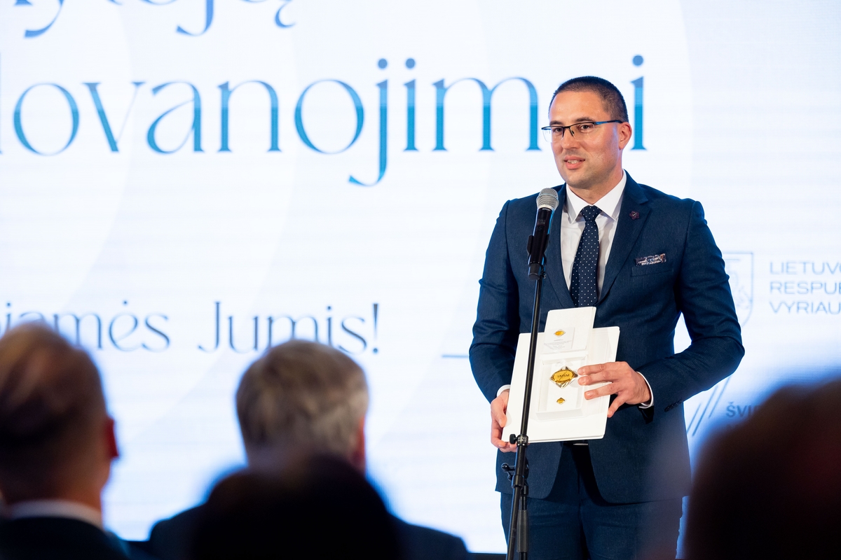 Švietimo, mokslo ir sporto ministerijos įsteigta Meilės Lukšienės premija įteikta Vilniaus jėzuitų gimnazijos matematikos mokytojui Šarūnui Vaitkui.