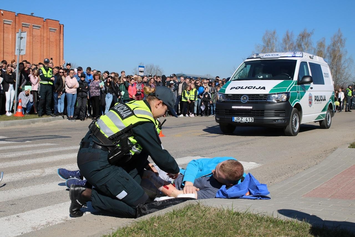 Paskutinis kursantų pasirodymas vyko prie mokyklos esančios gatvės. Buvo imituojamas eismo įvykis. Mokiniai džiaugėsi, jog savo akimis galėjo pamatyti, kaip įvykio vietoje dirba policijos pareigūnai.