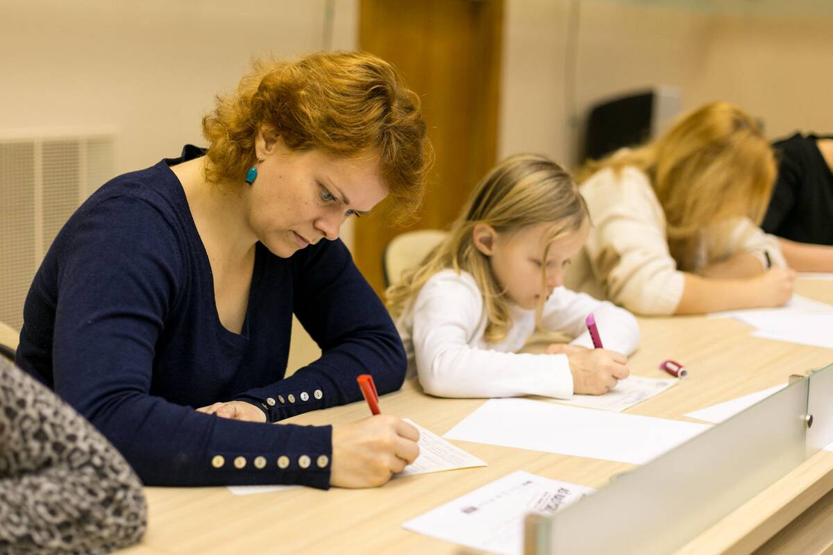 Rašyti nacionalinį diktantą kauniečiai rinkosi pakilios nuotaikos. 11 val. virš popieriaus lapų savivaldybėje palinko įvairaus amžiaus žmonės. Tarp jų buvo ir pirmokė Gerda. „Tikriausiai ne viską spės užrašyti, gal tik kai kuriuos žodžius, bet ji labai norėjo dalyvauti“, – sakė mergaitės mama Erika Petrulionienė, konkurse dalyvaujanti ir pati.