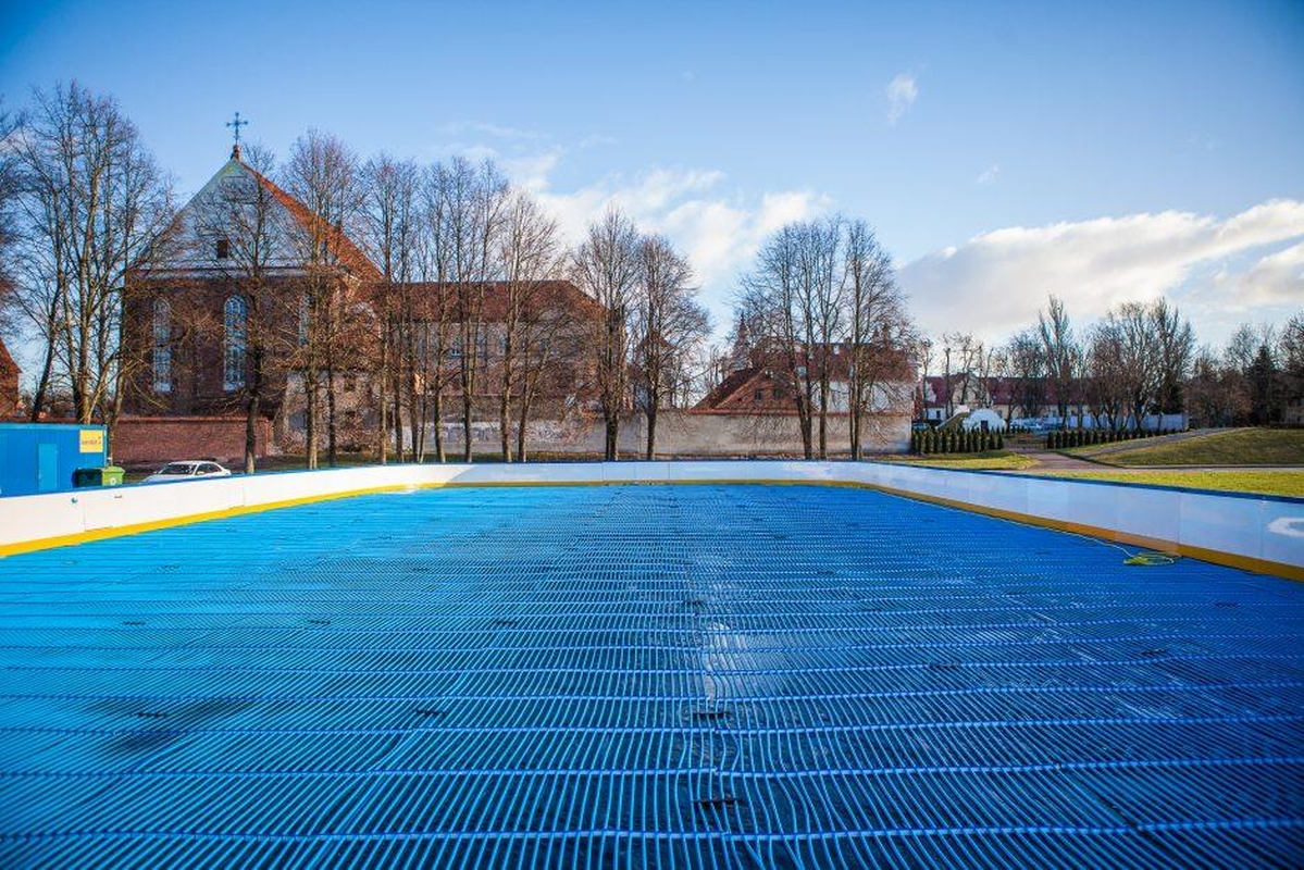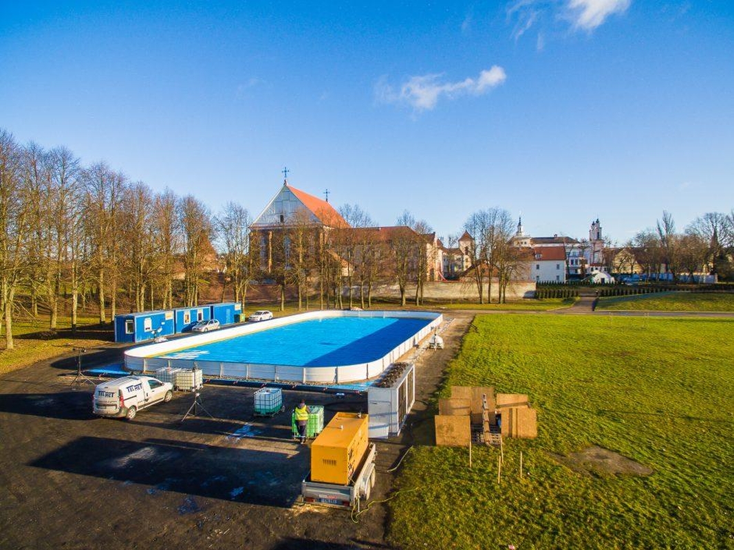 Anksčiau buvo pranešta, kad čiuožyklą planuojama atidaryti šį trečiadienį. Šiandien savivaldybė pranešė, kad 40 metrų ilgio ir 20 metrų pločio praėjusį savaitgalį pradėta įrenginėti ledo čiuožykla bus paruošta penktadienį.