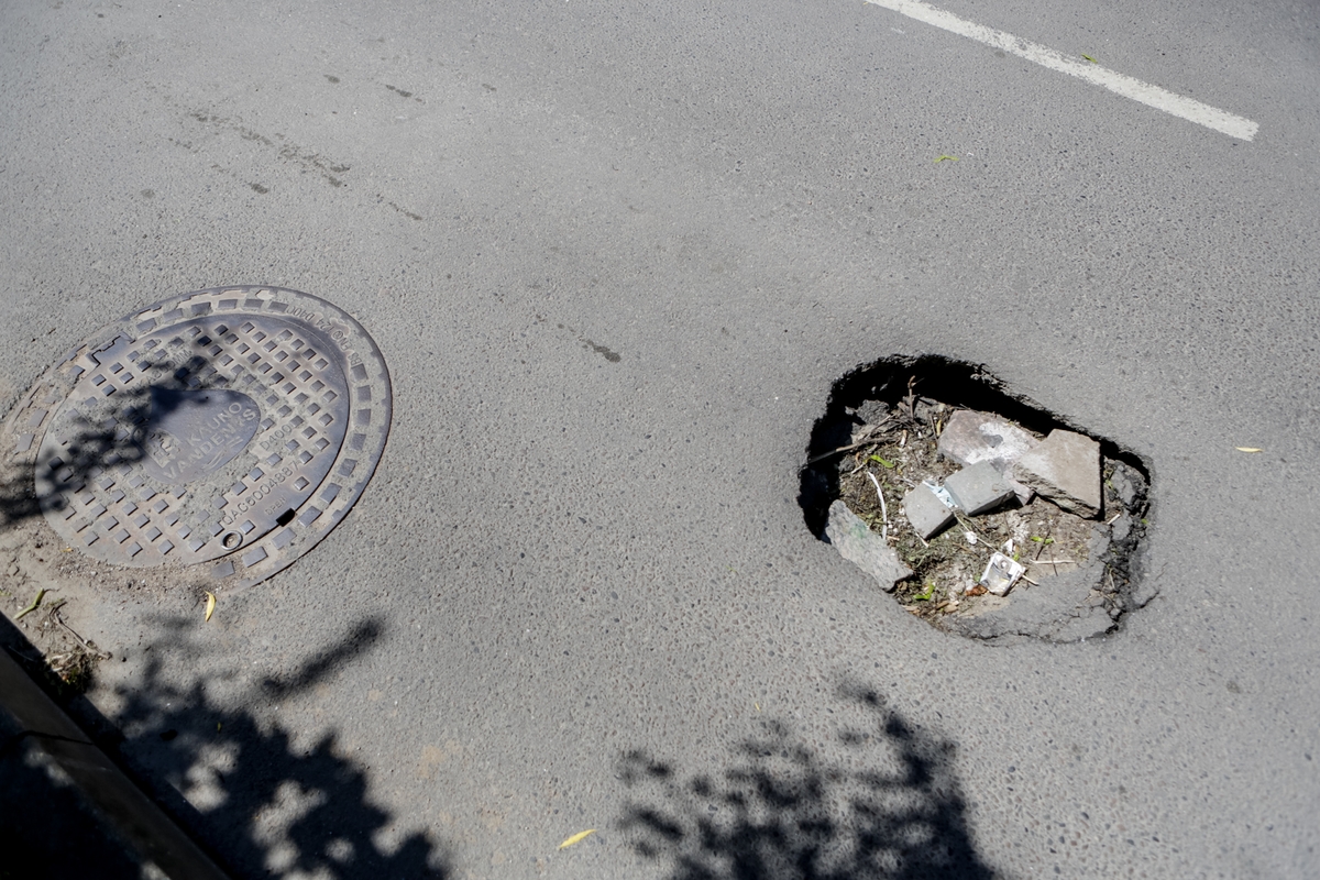 Anot jo, anksčiau toje vietoje niekada nėra buvę jokios duobės. Geros būklės visa gatvės danga, išskyrus šią vietą.