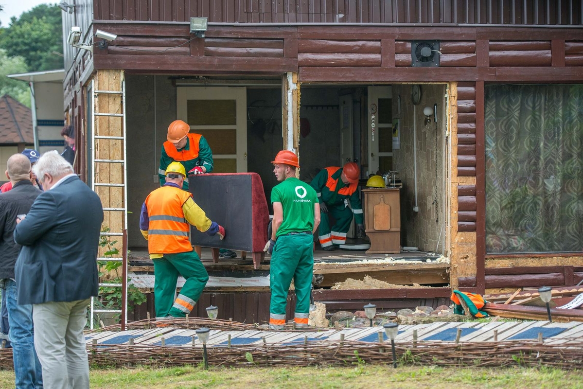 Liepos 17 dieną pradėti nelegalios pirties griovimo darbai užtruko keletą dienų. Jų metu antstoliai fiksavo faktines aplinkybes, o pirties viduje rasti daiktai buvo nuvežti į saugojimo aikštelę.