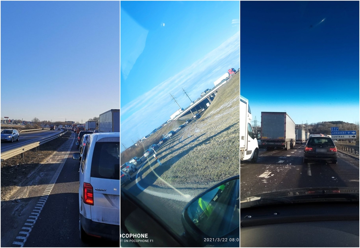 Vaizdais iš sausakimšų gatvių kovo 22-ąją internautai ėmė dalytis socialiniame tinkle „Facebook“. Važiuojantiems kryptimi nuo Akademijos miestelio link „Megos“ vairuotojams prieš pat 8 val. teko ilgam strigti spūstyje.