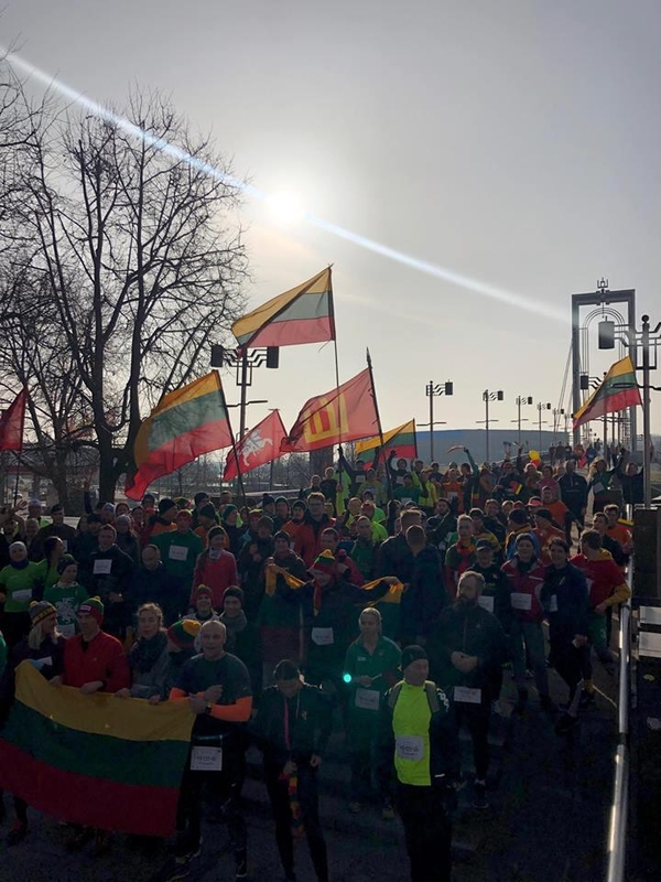Kaune jau ketvirtus metus šventiškai nusiteikę bėgikai, prisiderindami prie bendro grupės tempo, iš anksto atitaikyta ir išbandyta trasa pasileido Vasario 16-osios vėlyvą rytą.