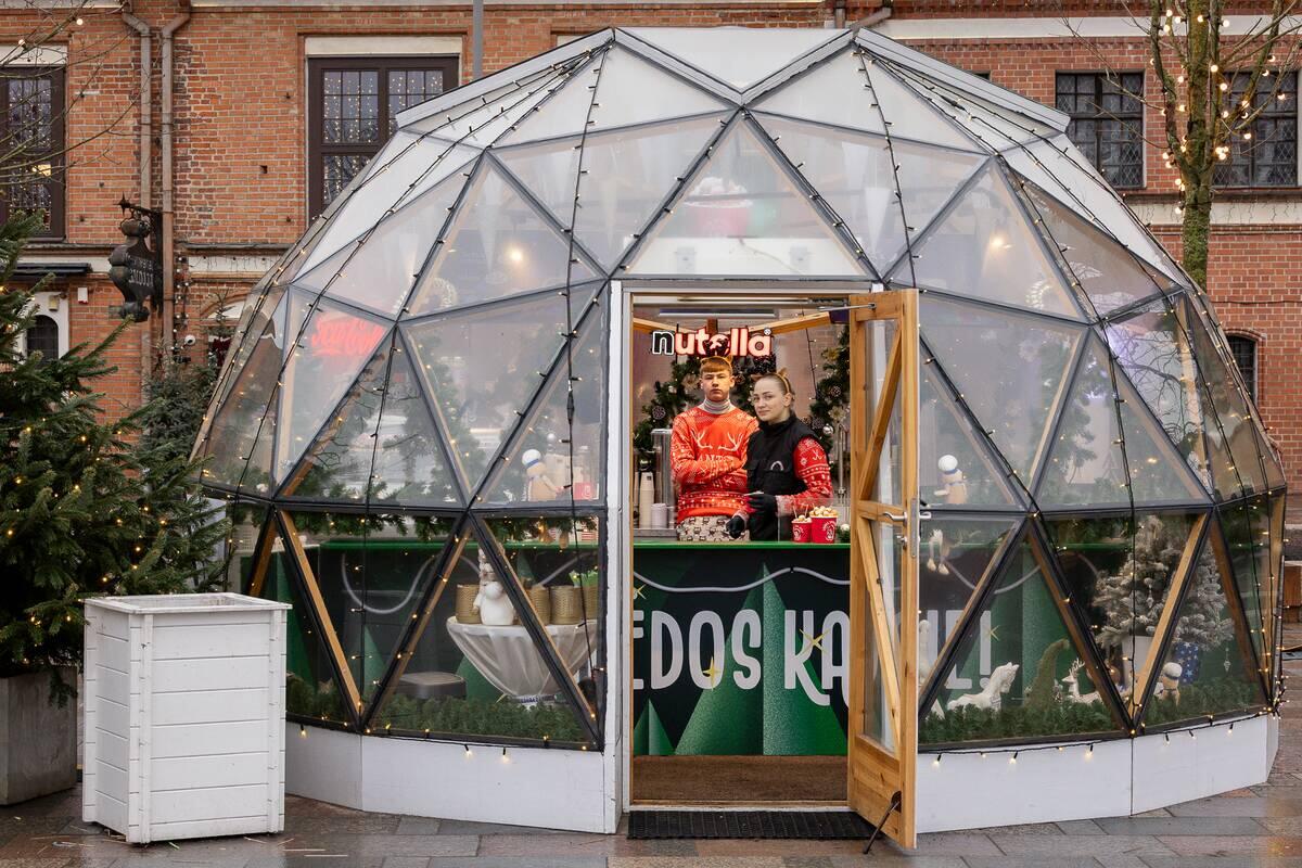 „Kol kas į mūsų kupolą užsuka tik vienas kitas žmogus, kartais šeima su vaikais ar net augintiniais. Bet kai pradės temti, kai aplinkui atsiras daugiau šventiškos šviesos, žmonių turėtų gerokai padaugėti. Aišku, jei nepradės stipriai lyti arba neprasidės šlapdriba. Pavyzdžiui, antrosios Kalėdų dienos vakarą prekyba buvo puiki“, – sakė karštais gėrimais ir saldumynais prekiaujančiame kupole dirbanti Asta.
