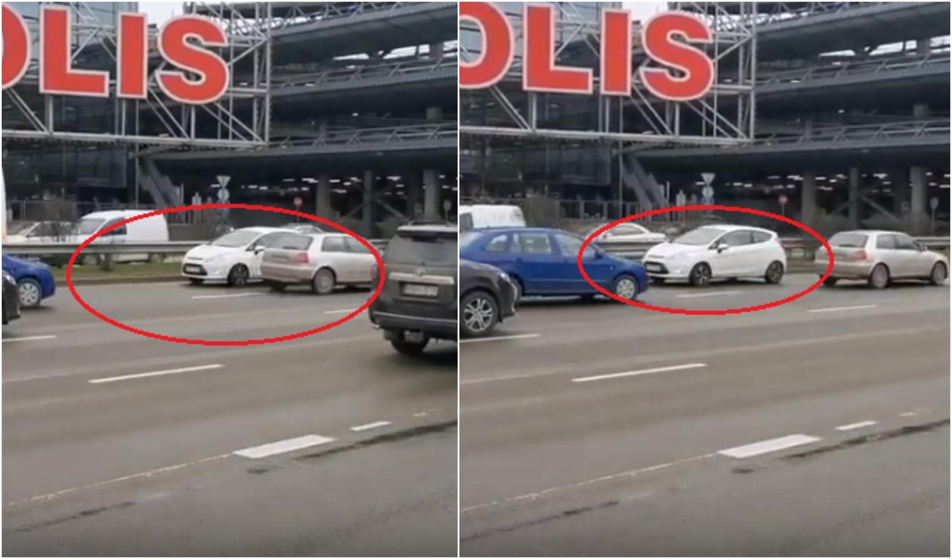 „Būna ir šitaip“, – po vaizdu rašė internautas. Vaizdo įraše matyti, kaip prie „Akropolio“ ketvirta eismo juosta važiuoja baltas „Ford“ automobilis. Automobilis aplink vykstant intensyviam eismui skuba priešpriešine juosta.