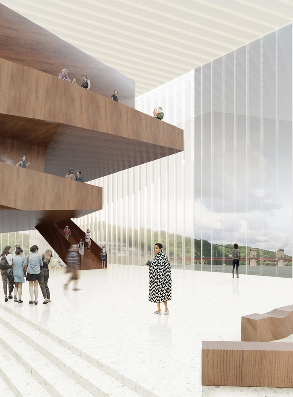 Aplink modernų pastatą Nemuno pakrantėje numatytos viešosios erdvės ir pakrantės amfiteatras turėtų tapti traukos objektu ne vien per renginius. Lankytojų patogumui suplanuotos požeminės ir antžeminės automobilių stovėjimo aikštelės.