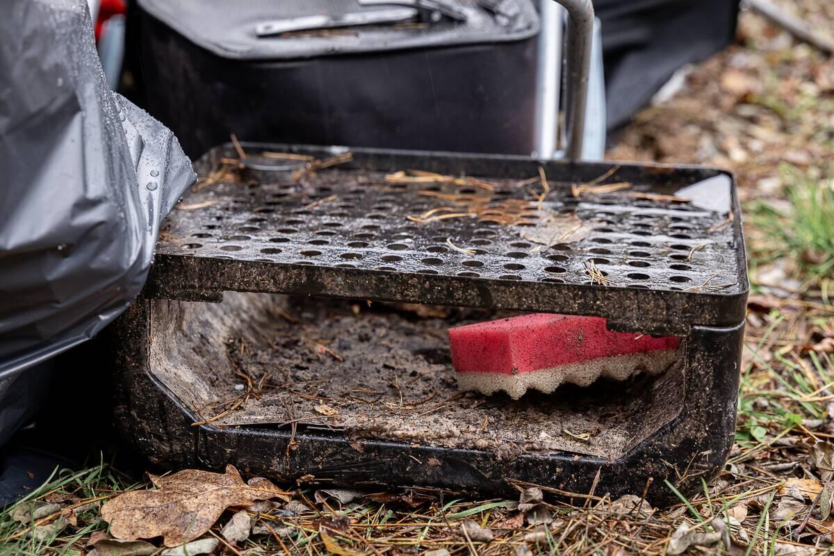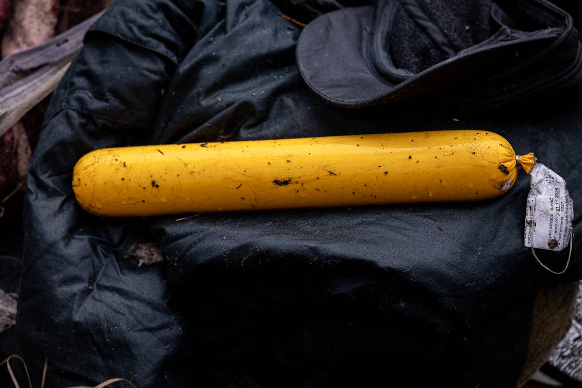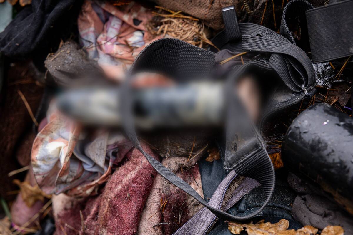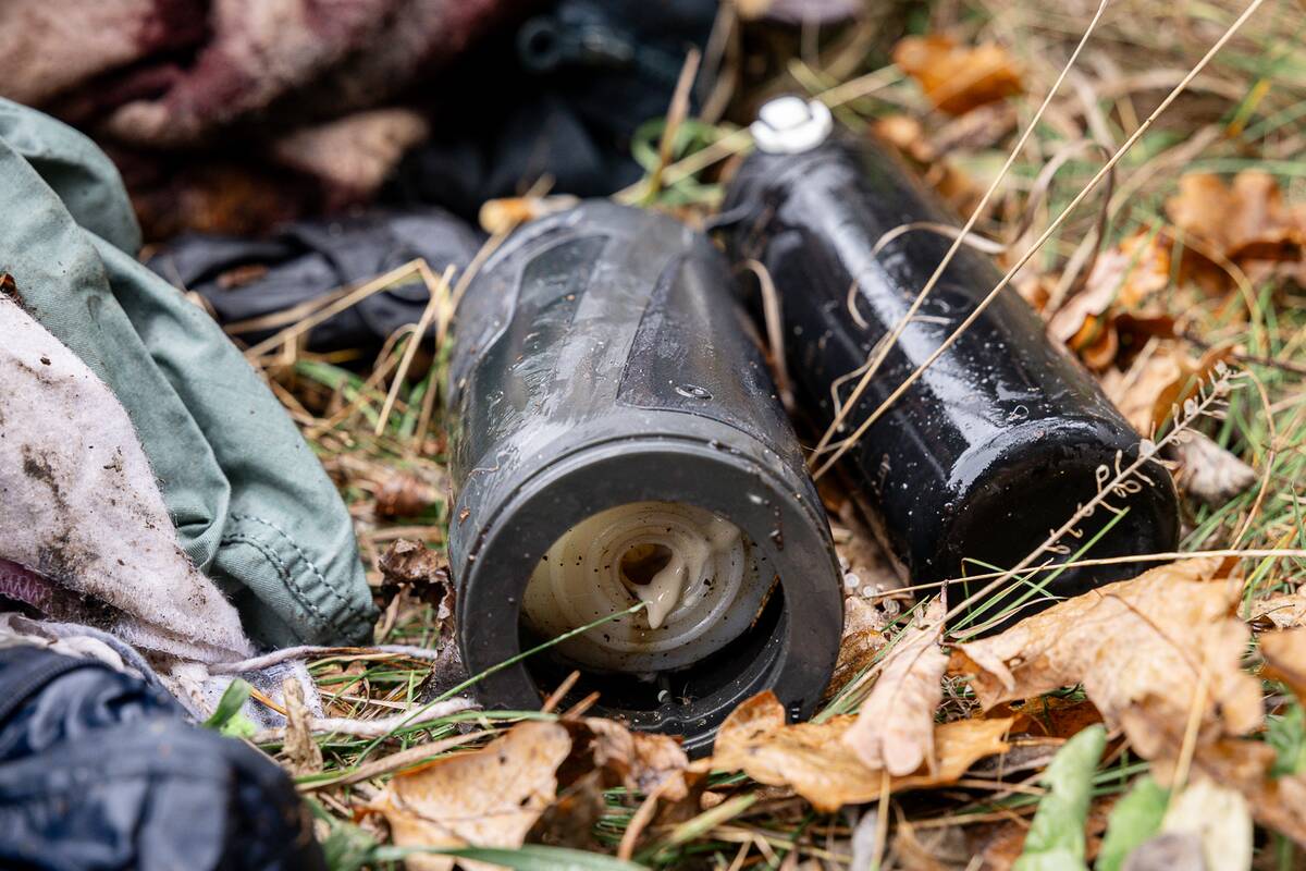 Palypėję ant kalniuko nuo jo pamatėme nugulėtą miško paklotės plotelį. Ten tikriausiai ir stovėjo palapinė. Aplink mėtėsi baterijos, išorinė baterija, atminties kortelė. Netoliese – laužavietė.