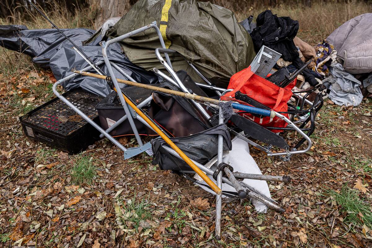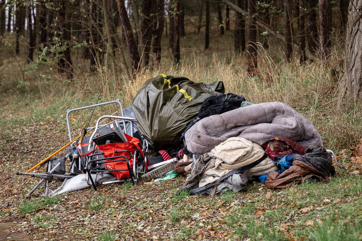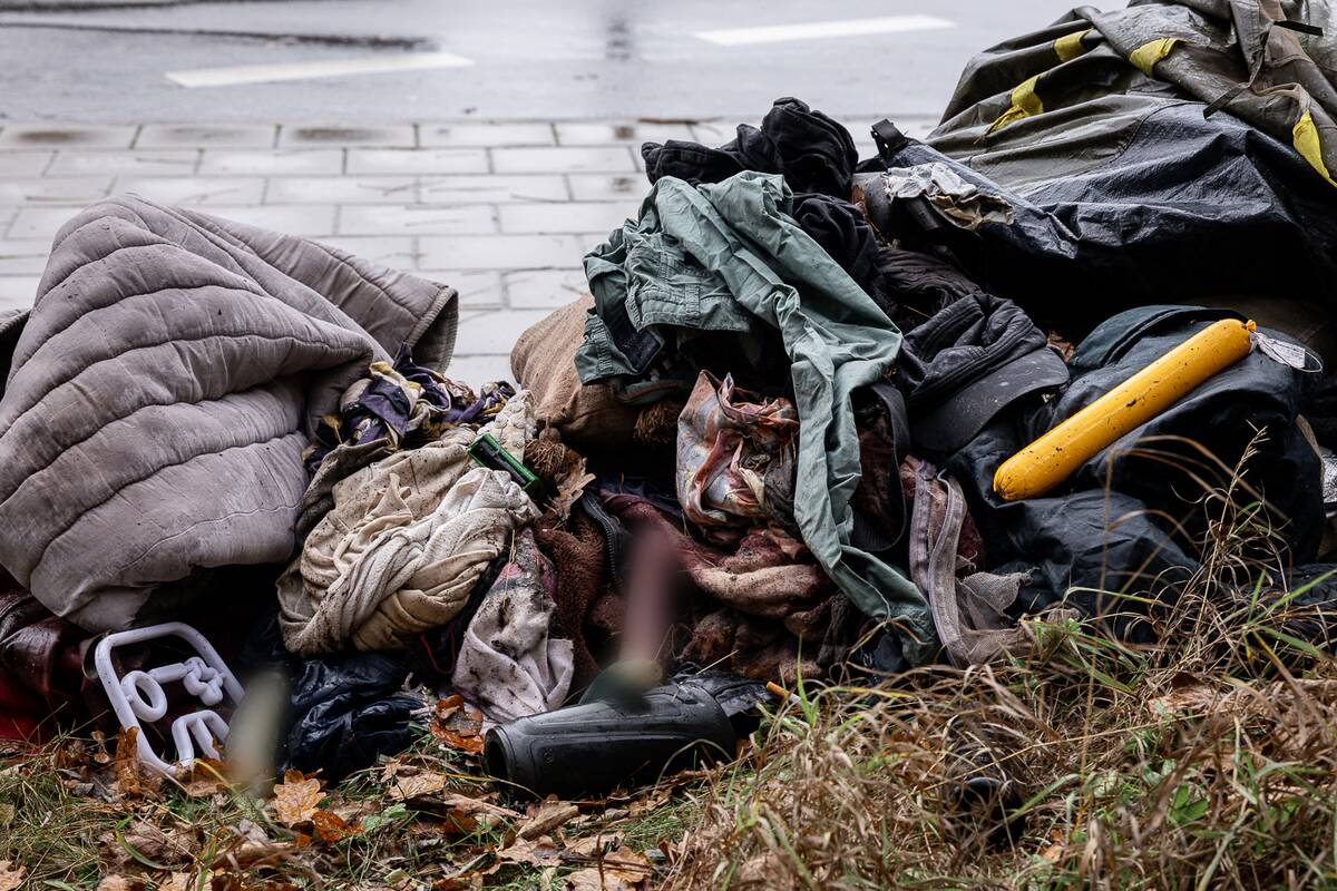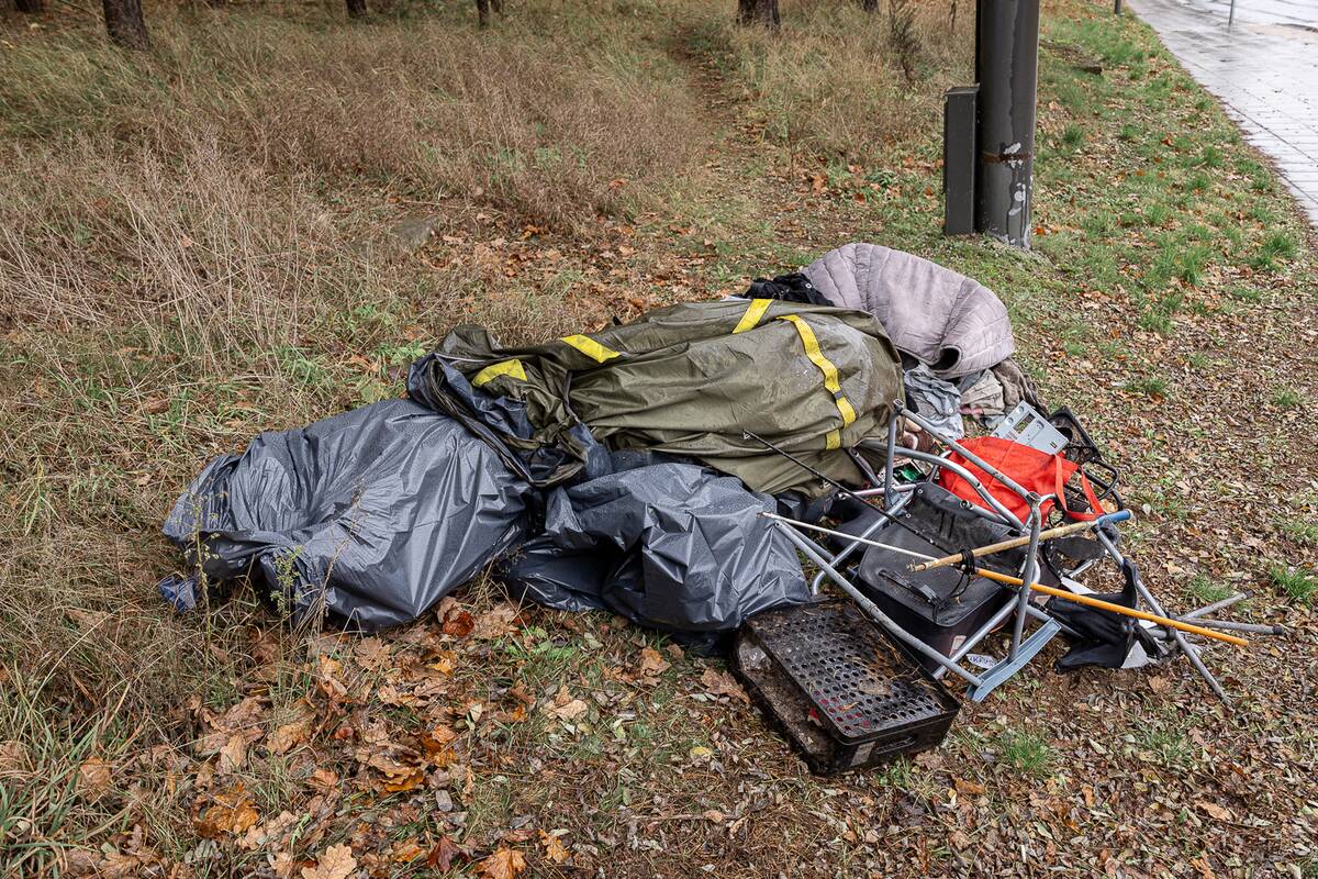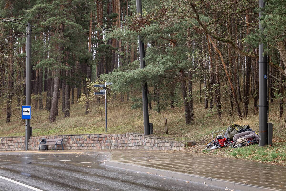 Nuvykę į skaitytojo nurodytą T. Masiulio gatvę, prie viešojo transporto stotelės radome sukrautą mantą: suvyniotą palapinę, į krūvą sumestų drabužių, čiužinį, meškerių, žvejybinę kėdę, kompiuterio dalių, maišą su šiukšlėmis.
